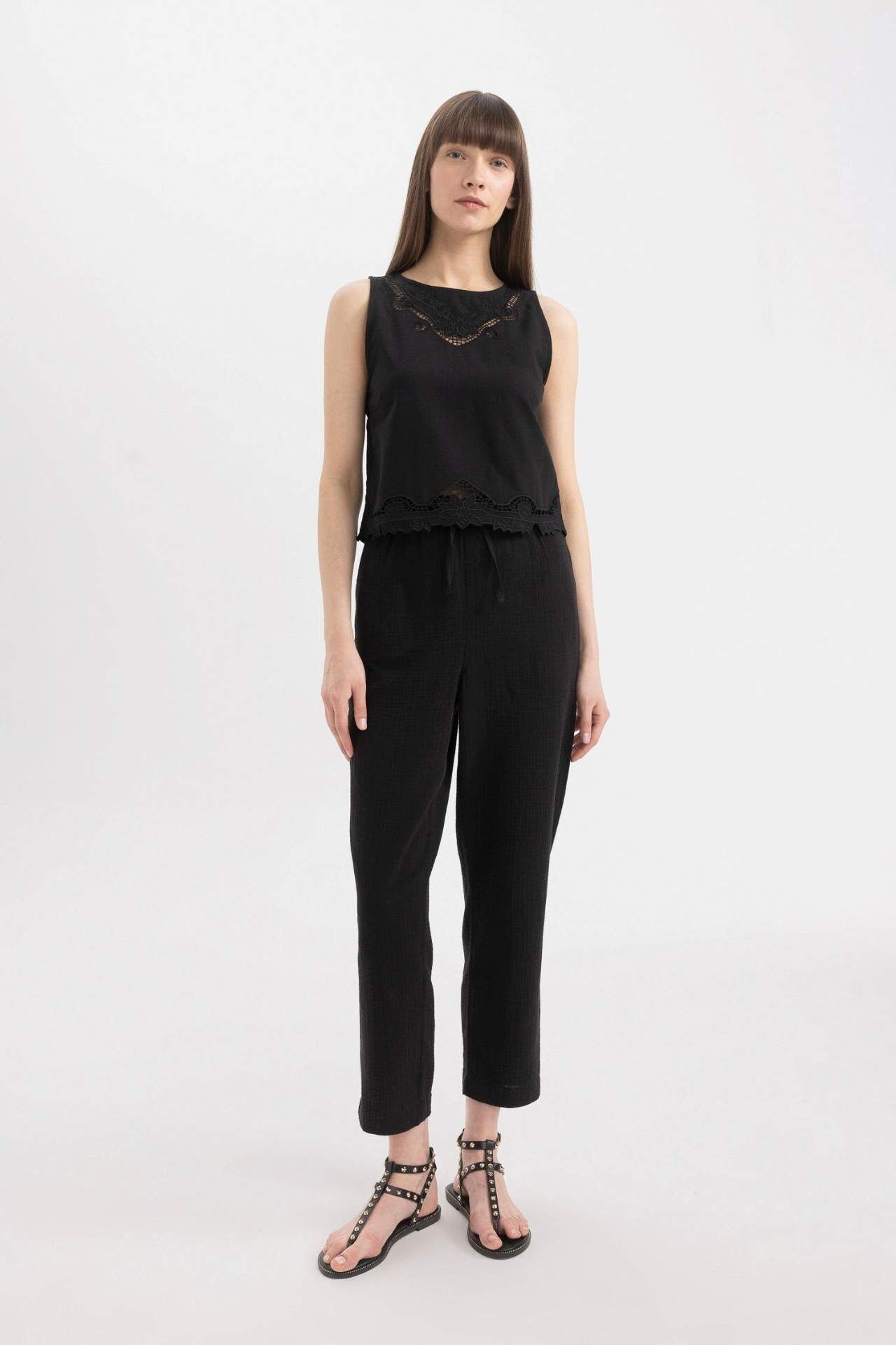 DeFactoFit Regular Fit Yuvarlak Yaka Keten Karışımlı Kolsuz Bluz