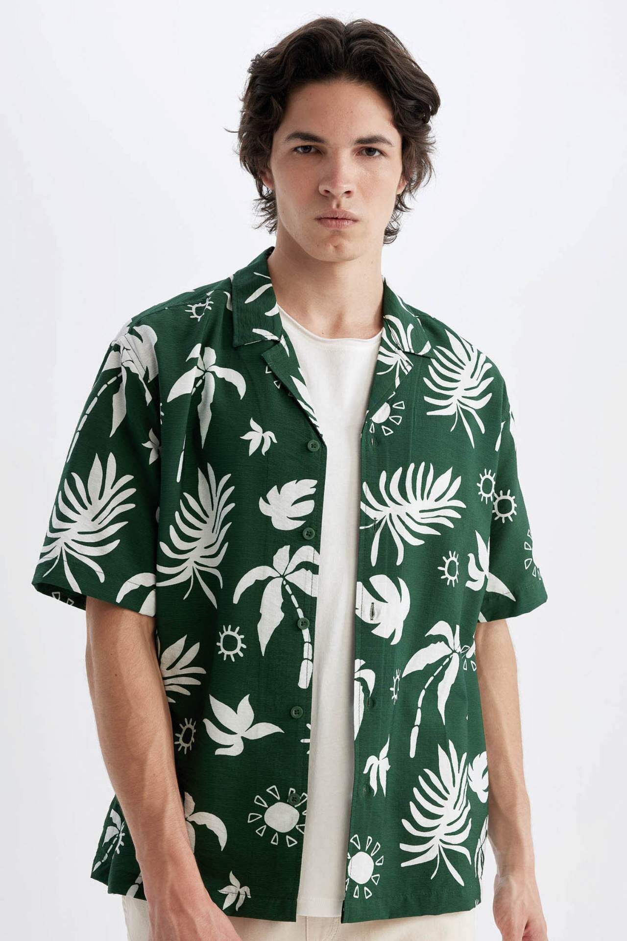 DeFactoFit Relax Fit Apaş Yaka Baskılı Viskon Kısa Kollu Gömlek C7699AX24SMGN245