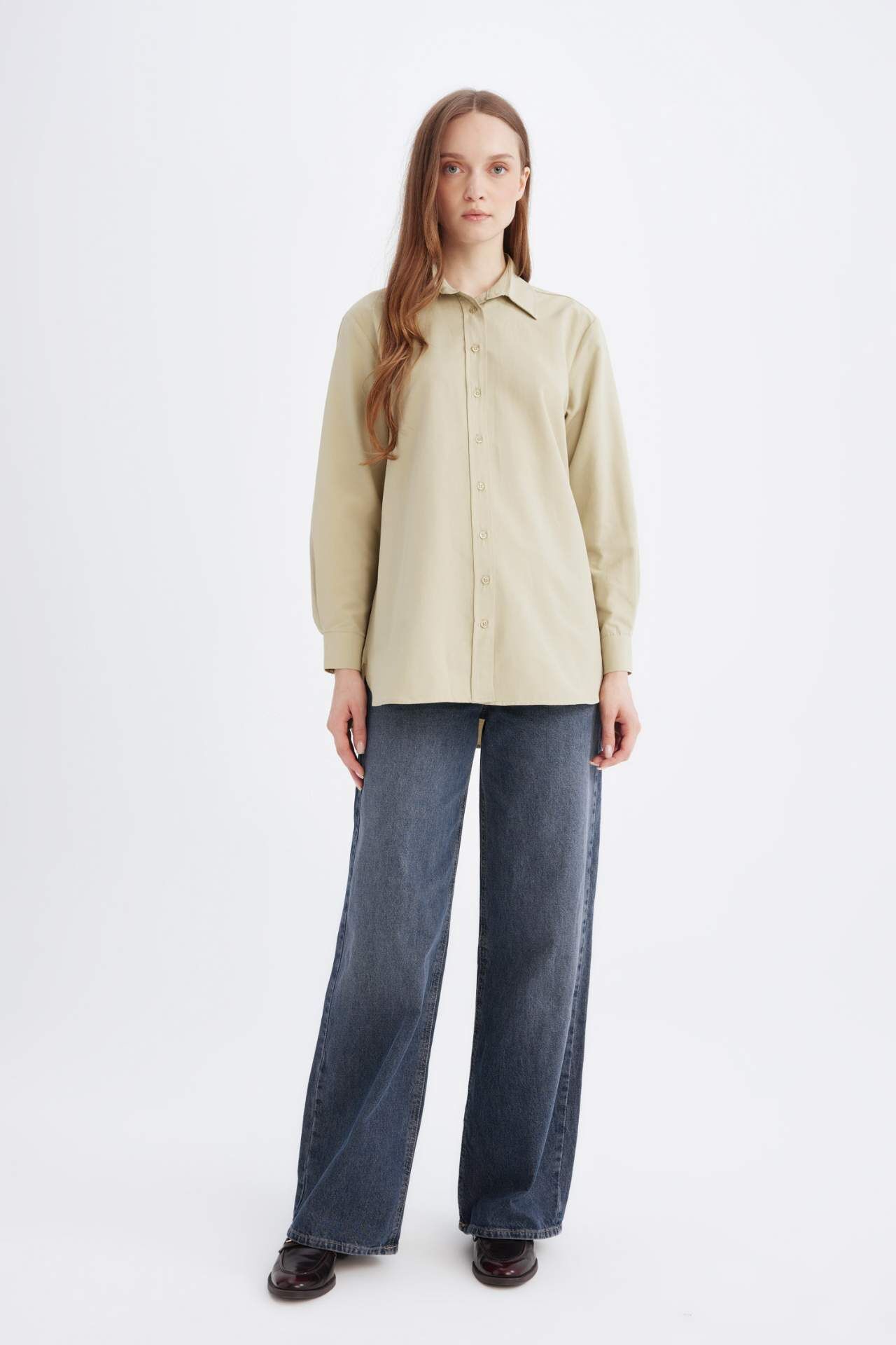 Relax Fit Basic Düz Poplin Uzun Kollu Gömlek Tunik