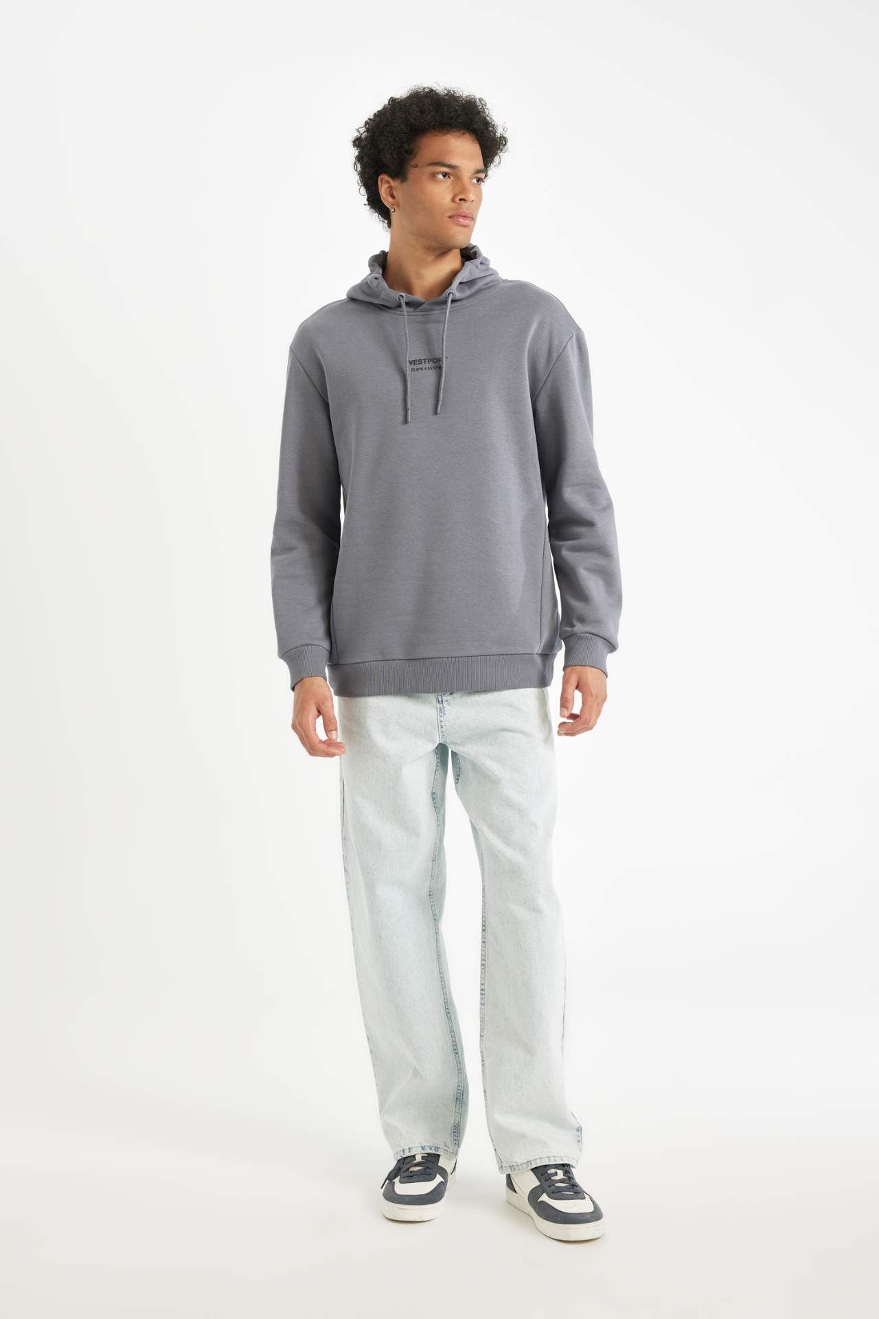 DeFactoFit Relax Fit Baskılı Kapüşonlu Kalın Sweatshirt