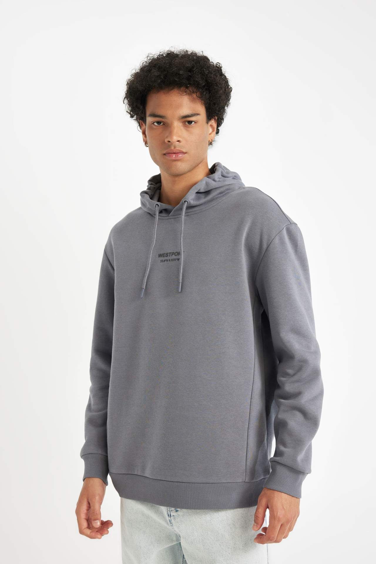 DeFacto DeFactoFit Relax Fit Baskılı Kapüşonlu Kalın Sweatshirt