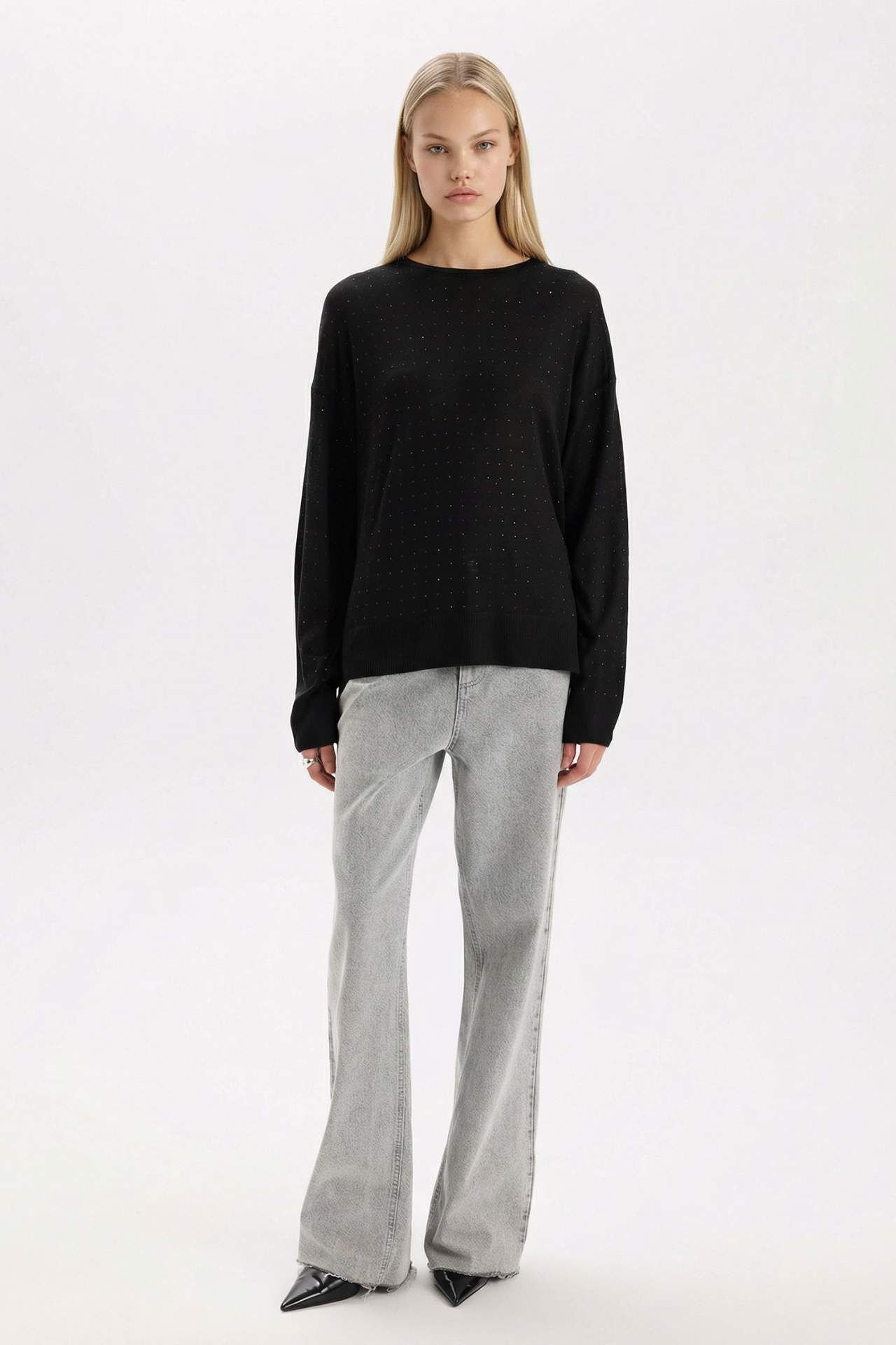 DeFacto Relax Fit Bisiklet Yaka Basic Düz Triko Kazak D8500AX24WNBK27