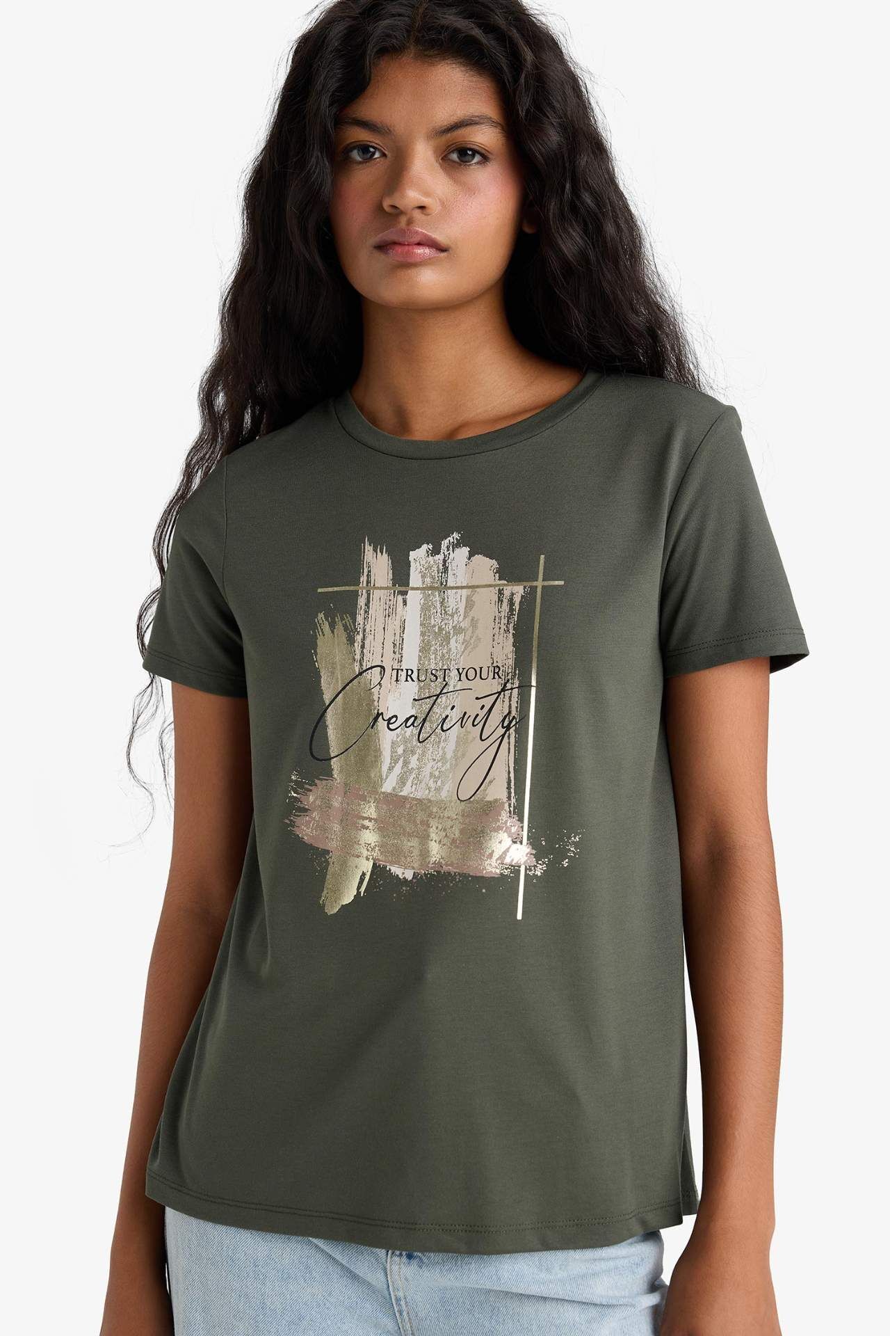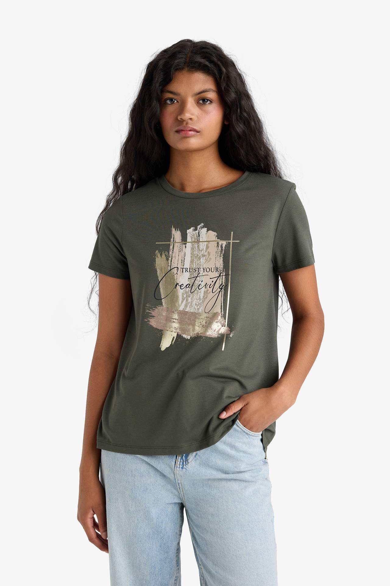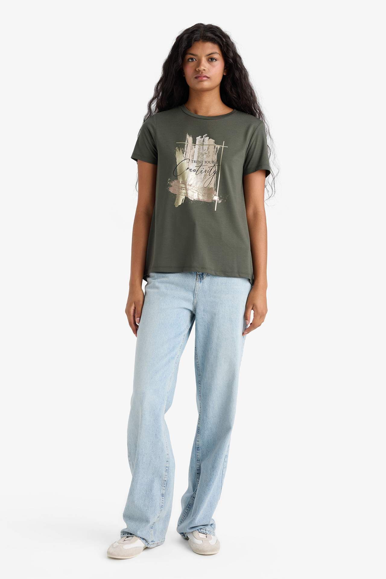 Relax Fit Bisiklet Yaka Baskılı Kısa Kollu Tişört