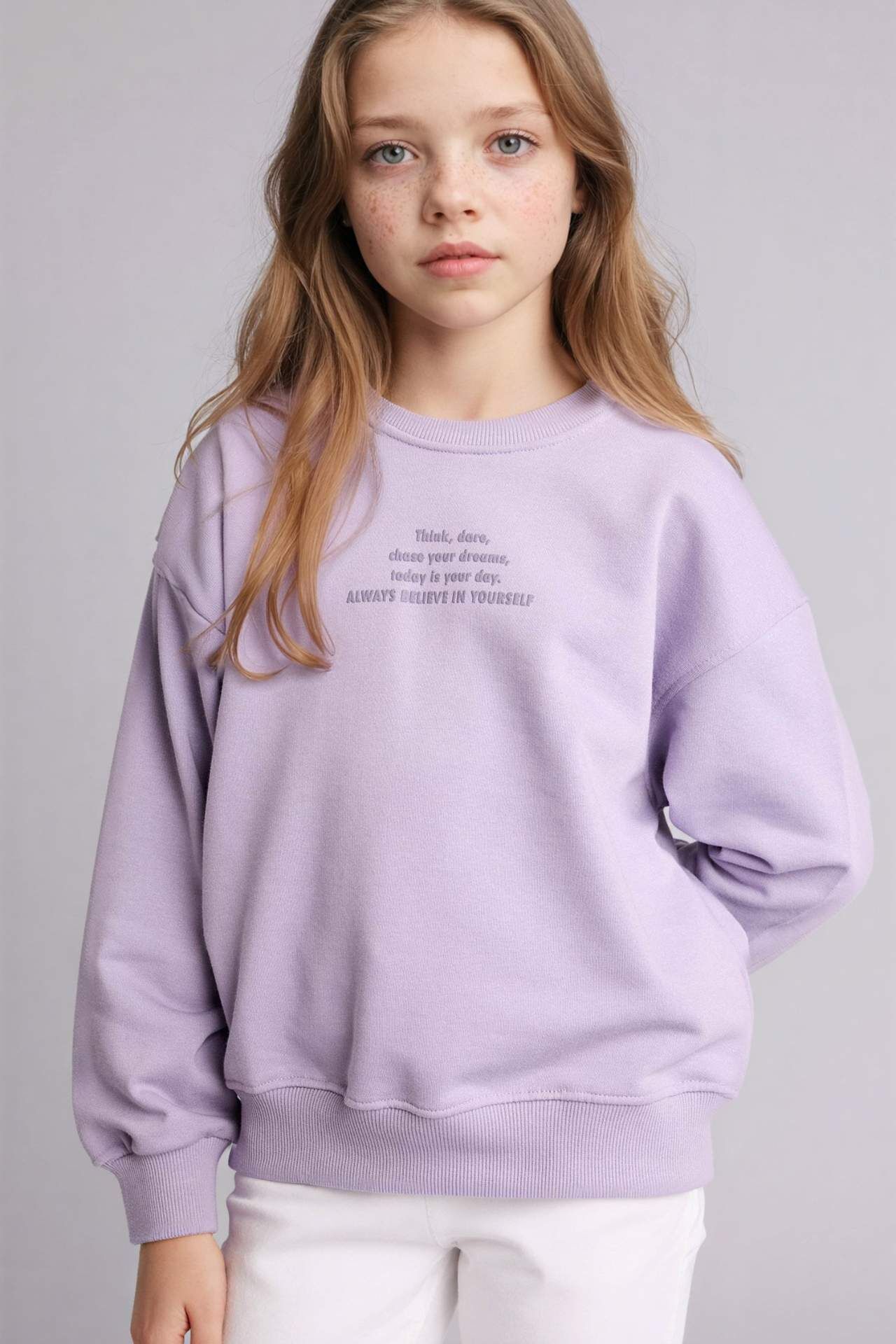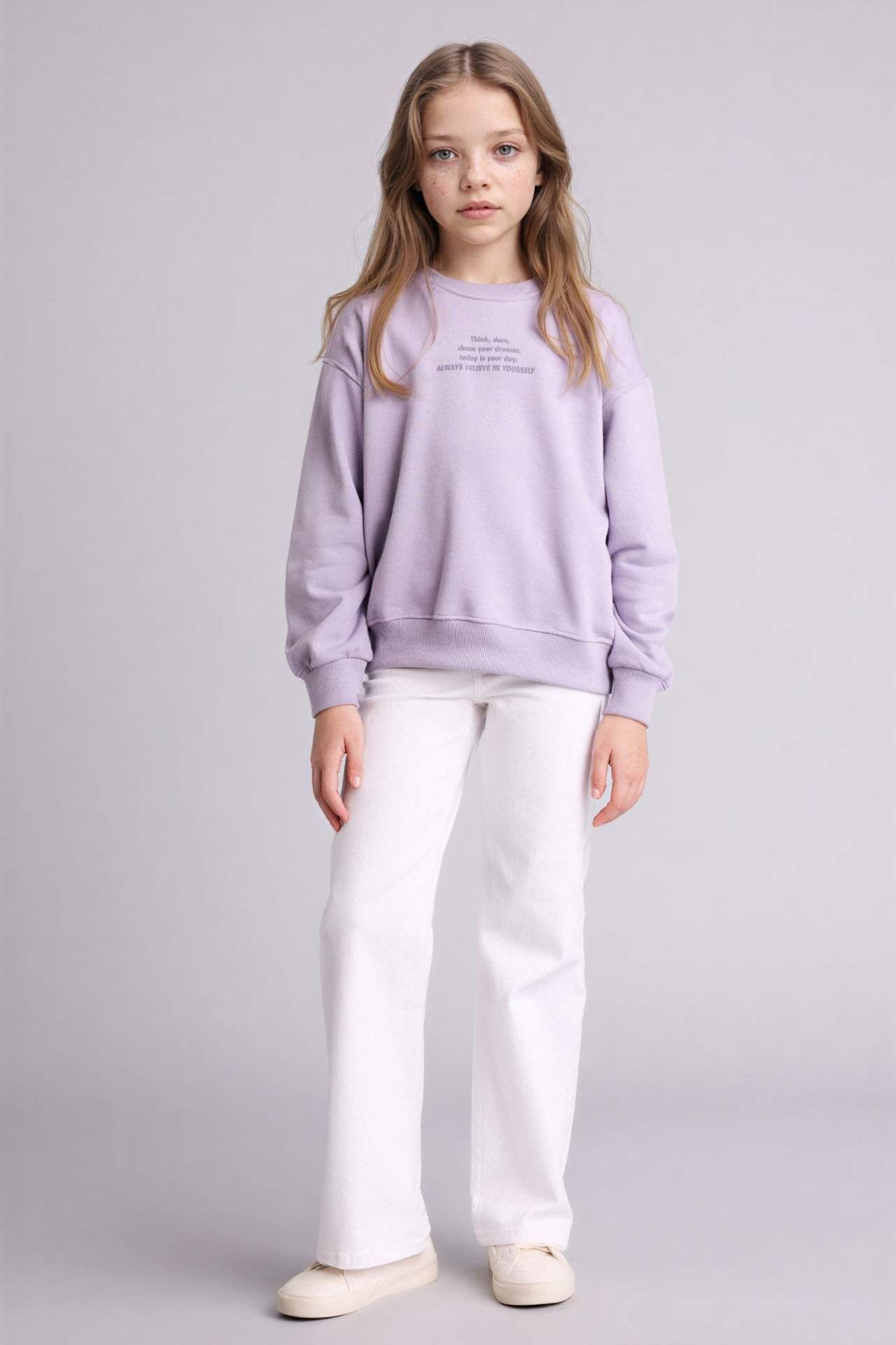 Relax Fıt Bisiklet Yaka Baskılı Sweatshirt Kız Çocuk