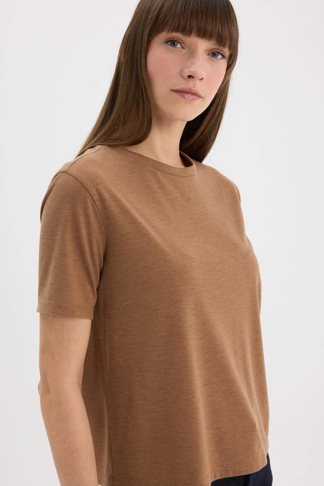DeFacto Relax Fit Bisiklet Yaka Casual Simli Kumaş Kısa Kollu Tişört C1662AX25SPBN299