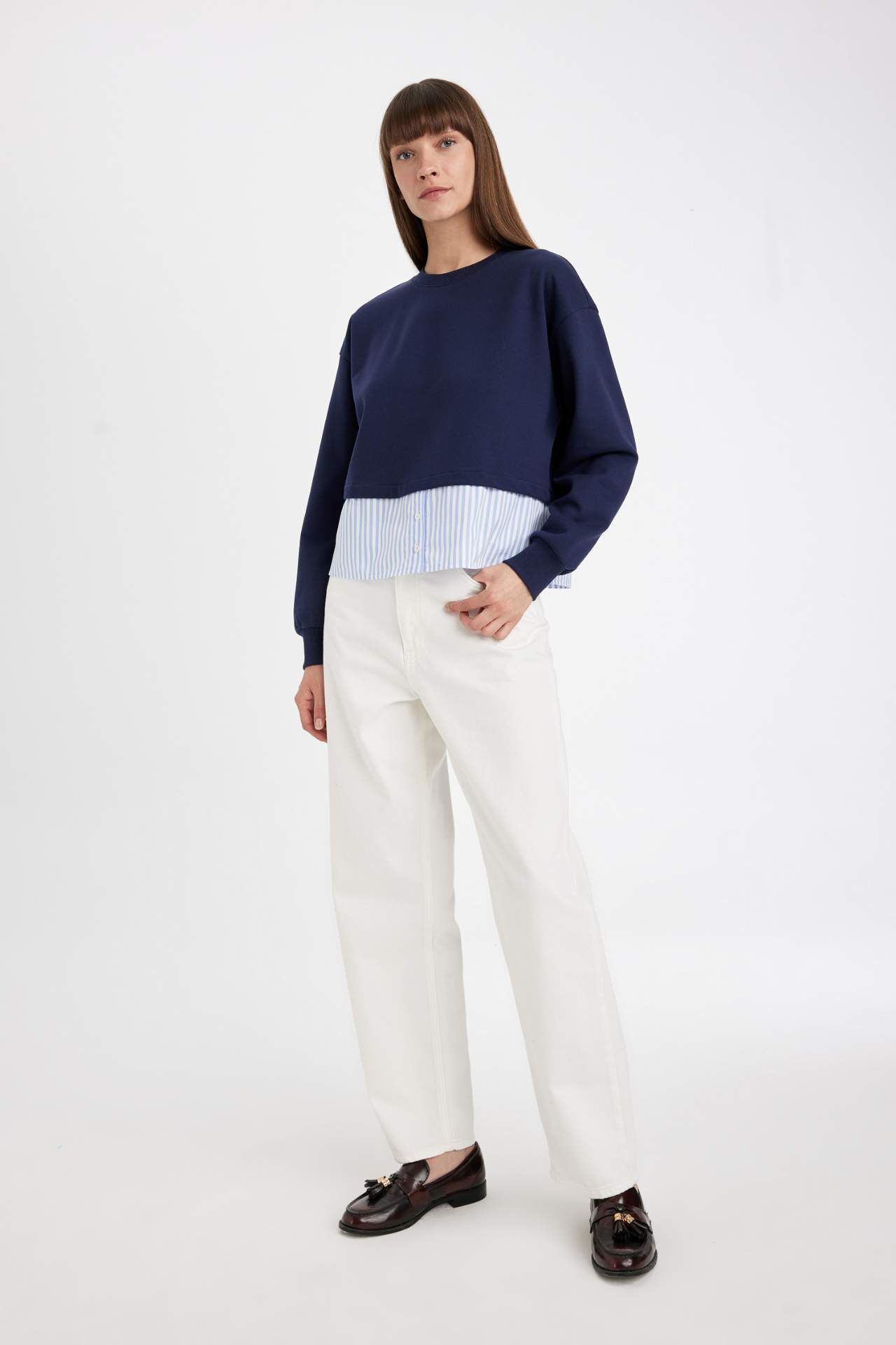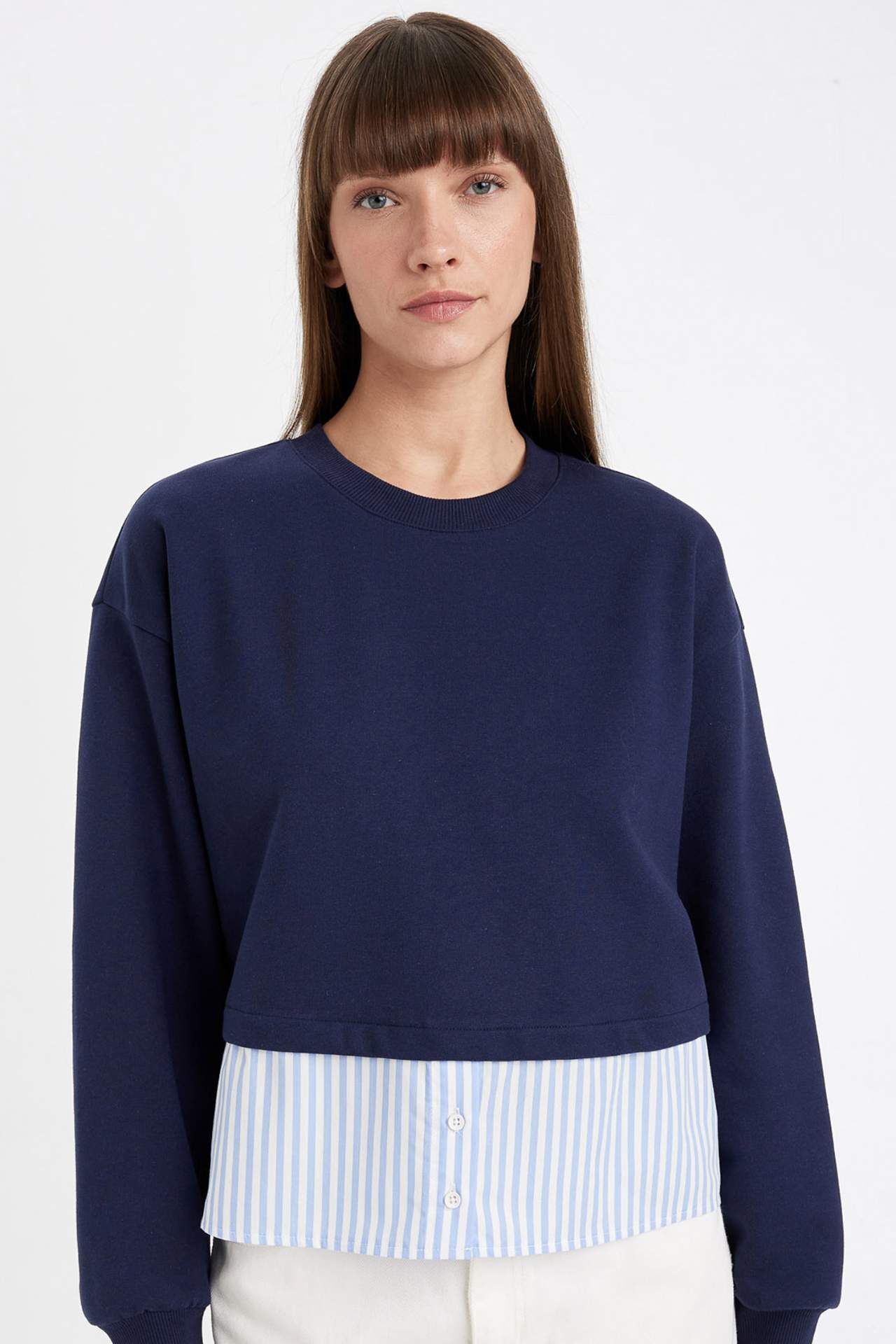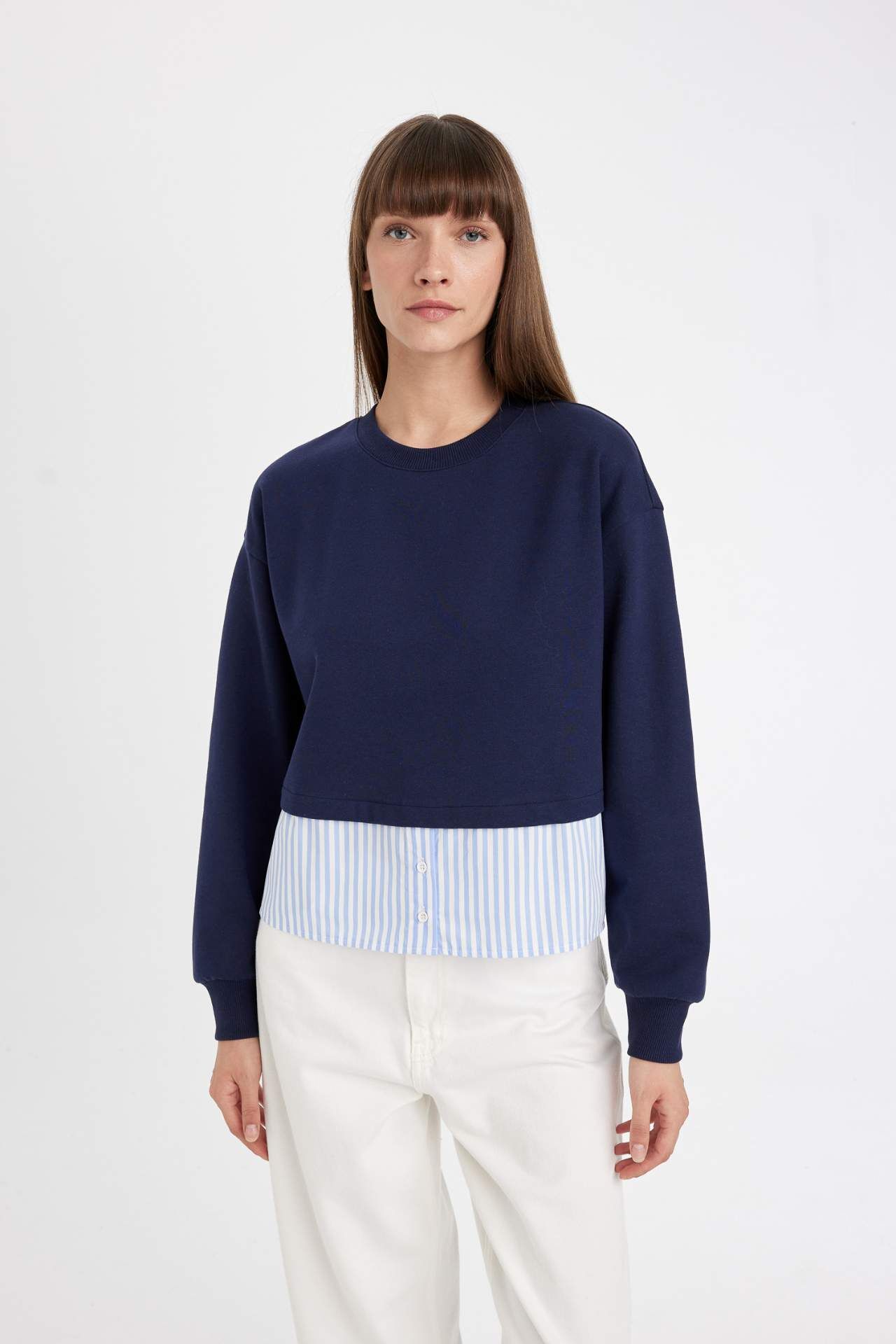 DeFacto Relax Fit Bisiklet Yaka Casual Sweatshirt