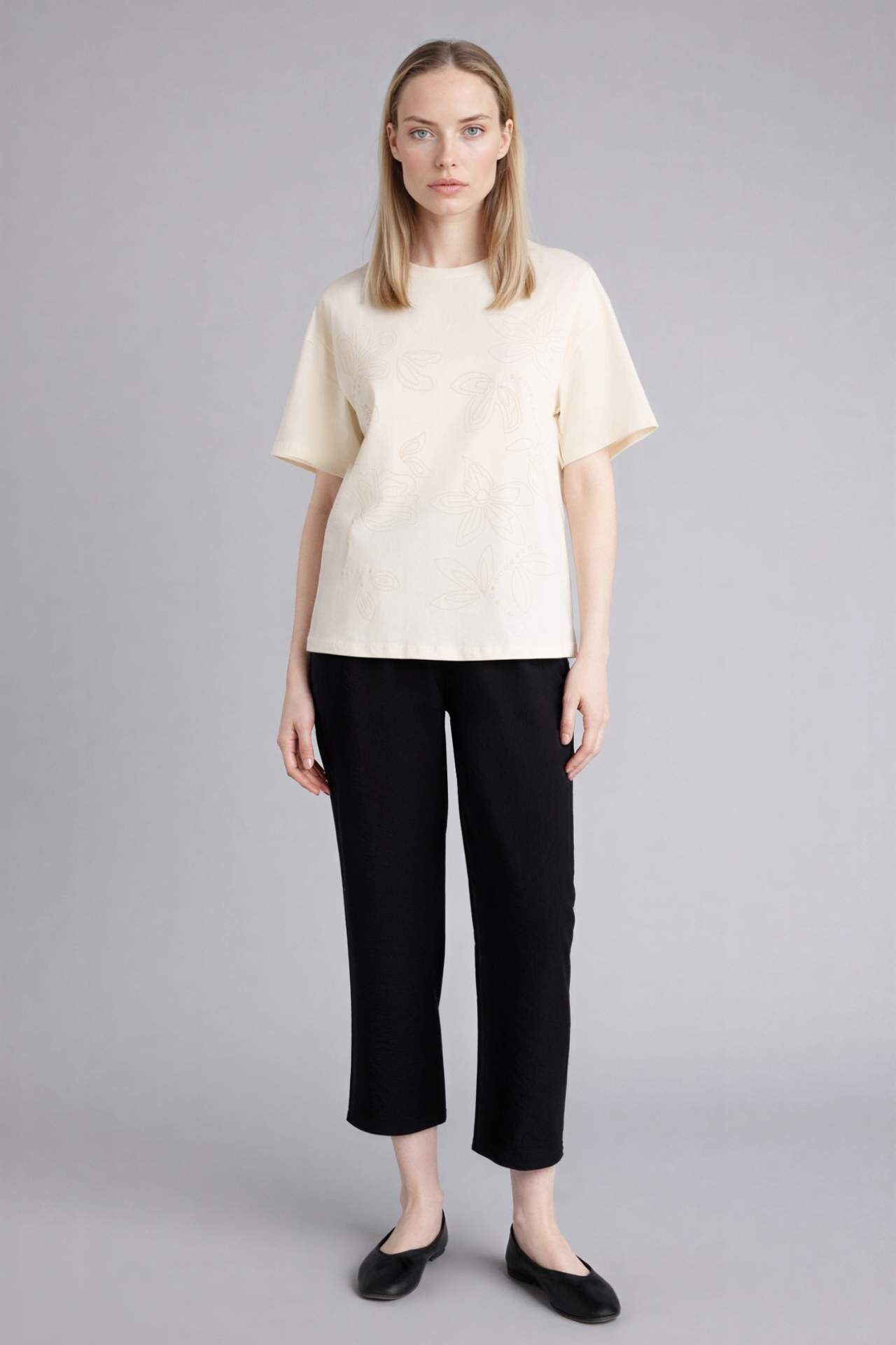 Relax Fit Desenli Penye Tişört, rahat kesimi ve özgün desenleriyle günlük kombinlerinize canlı bir dokunuş katar. Yumuşak penye kumaşı sayesinde gün boyu konfor sağlar. Pamuk 100% Manken Bedeni: Göğüs: 84 Boy: 1,72 Basen: 92 Bel: 61