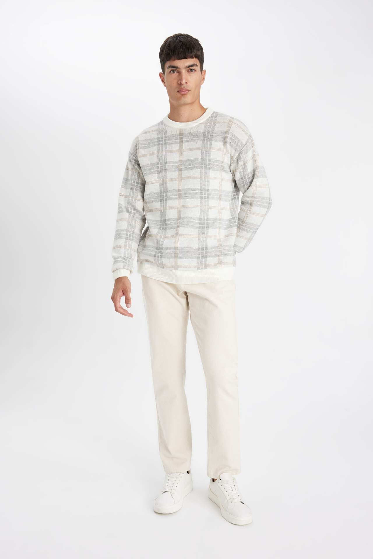 DeFacto Relax Fit Bisiklet Yaka Desenli Triko Kazak