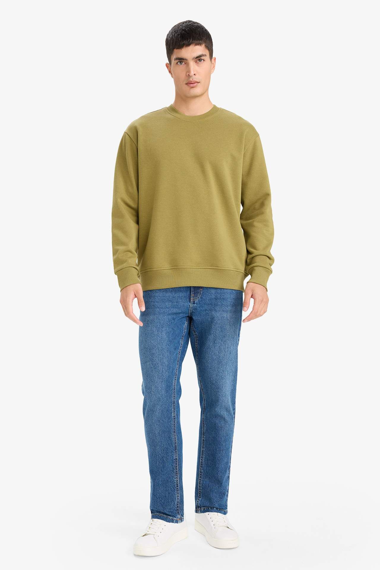 Relax Fit Bisiklet Yaka Kalın İçi Yumuşak Tüylü Basic Düz Sweatshirt