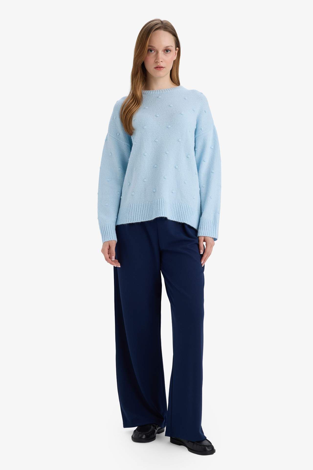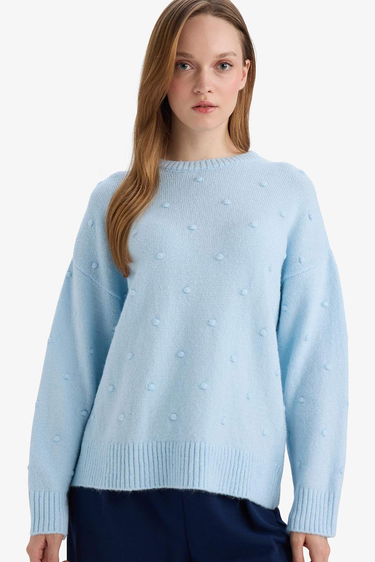 Relax Fit Bisiklet Yaka Triko Kazak, geniş kesimi ve yumuşak dokusuyla gün boyu konfor sağlar. Rahat fit tasarımı hareket özgürlüğü sunarken, klasik bisiklet yaka stili sade ve şık bir görünüm kazandırır. Hem tek başına hem de katmanlı kombinlerde rahatlıkla kullanılabilir. Akrilik 75%,Poliester 25%,Akrilik 75%,Poliester 25%,Akrilik 75%,Poliester 25%,Akrilik 75%,Poliester 25%,Akrilik 75%,Poliester 25%,Akrilik 75%,Poliester 25%,Akrilik 75%,Poliester 25% Manken Bedeni: Göğüs: 84 Boy: 1,74 Basen: 92 Bel: 61