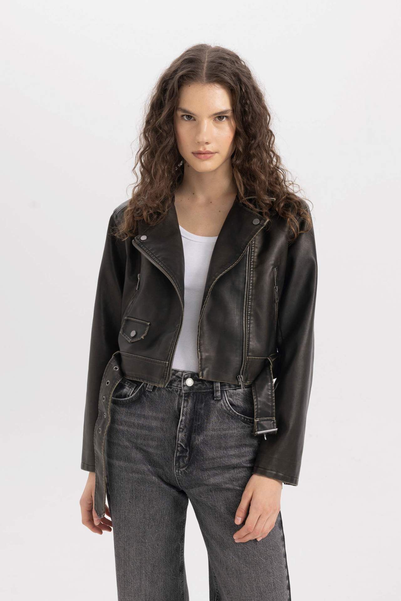 DeFacto Relax Fit Ceket Suni Deri Ceket Mont