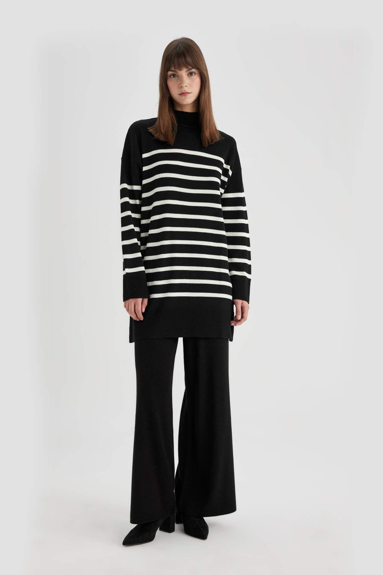 DeFacto Relax Fit Çizgili Balıkçı Yaka Triko Tunik