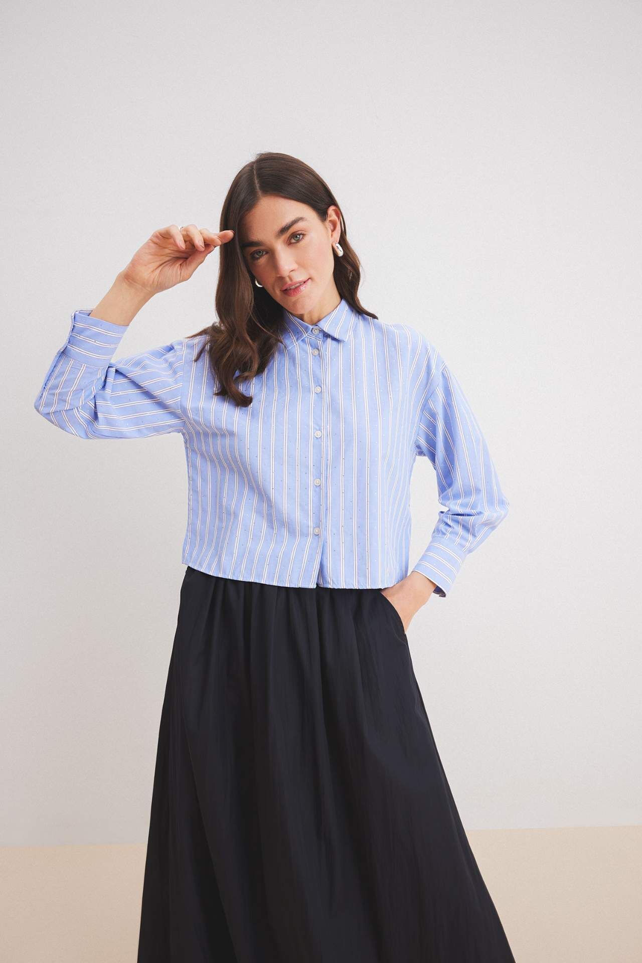 Relax Fit Çizgili Poplin Uzun Kollu Gömlek Tunik