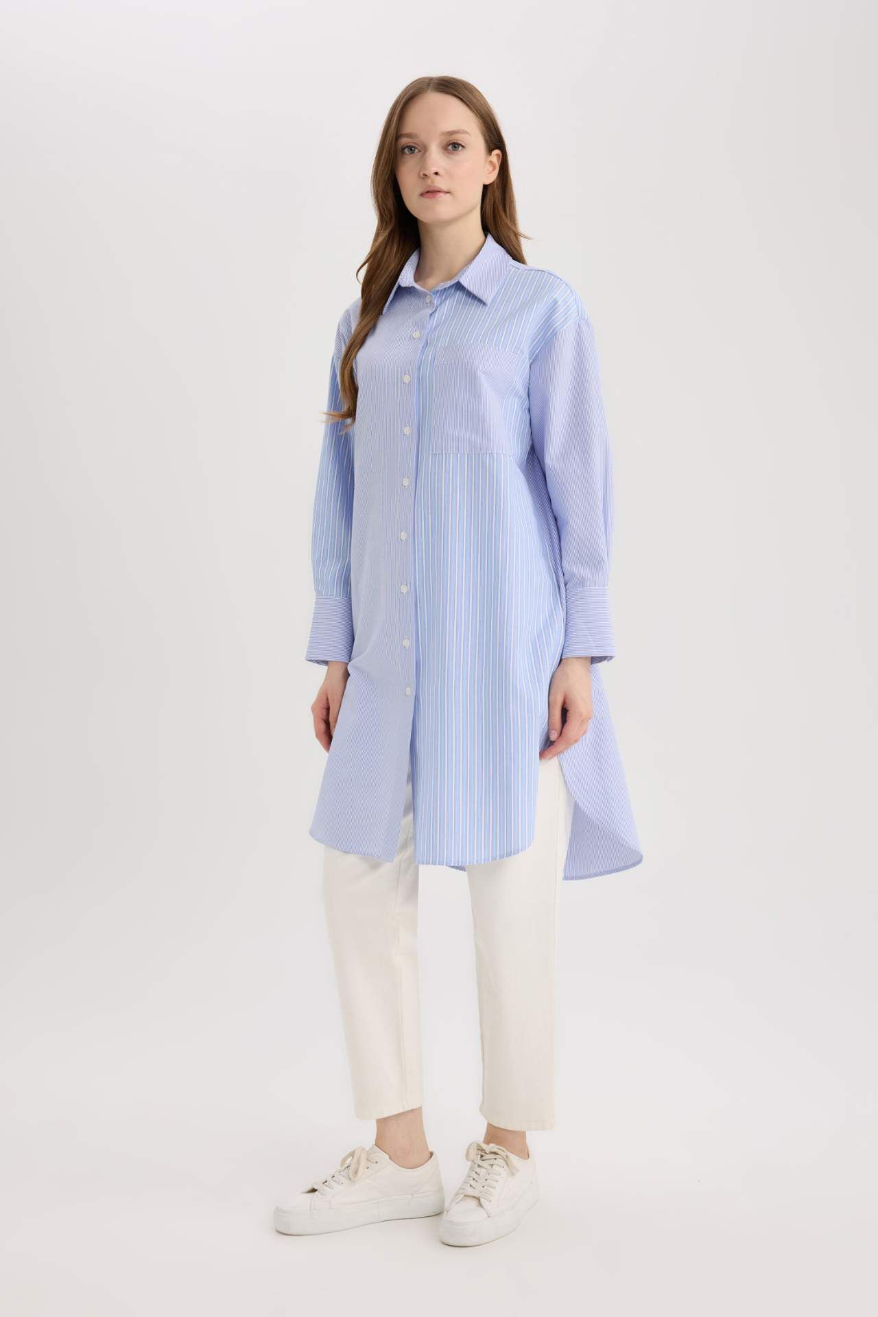 Relax Fit Çizgili Poplin Uzun Kollu Gömlek Tunik