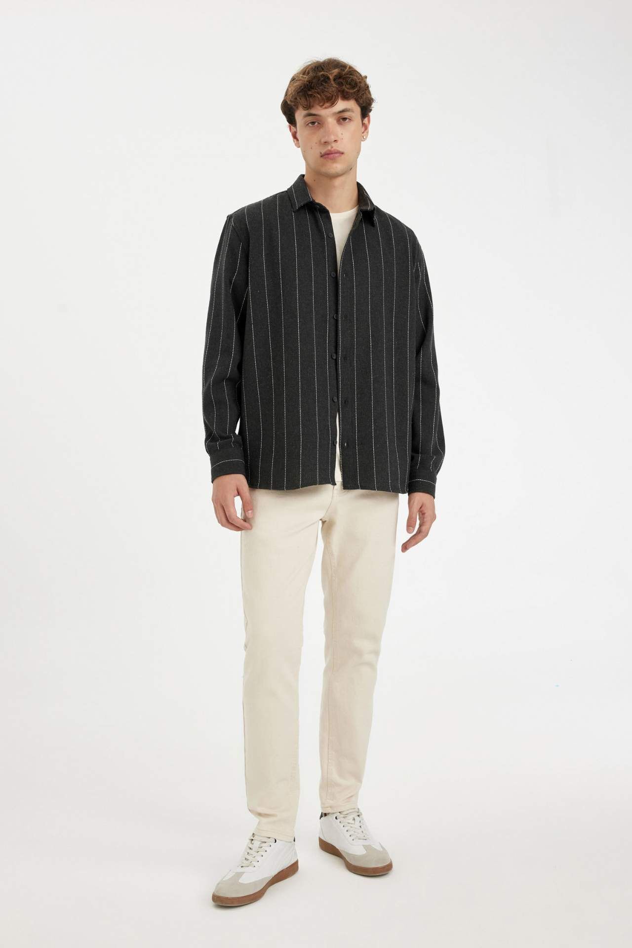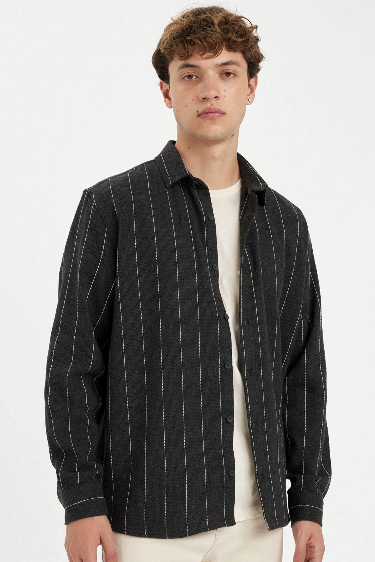 DeFacto Relax Fit Çizgili Uzun Kollu Gömlek D7140AX24AUAR231