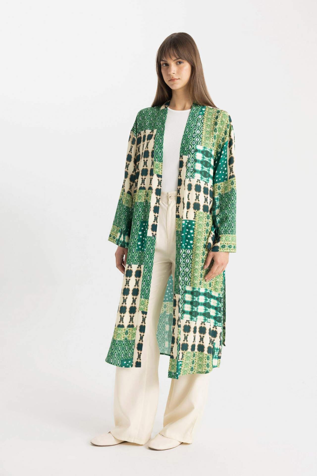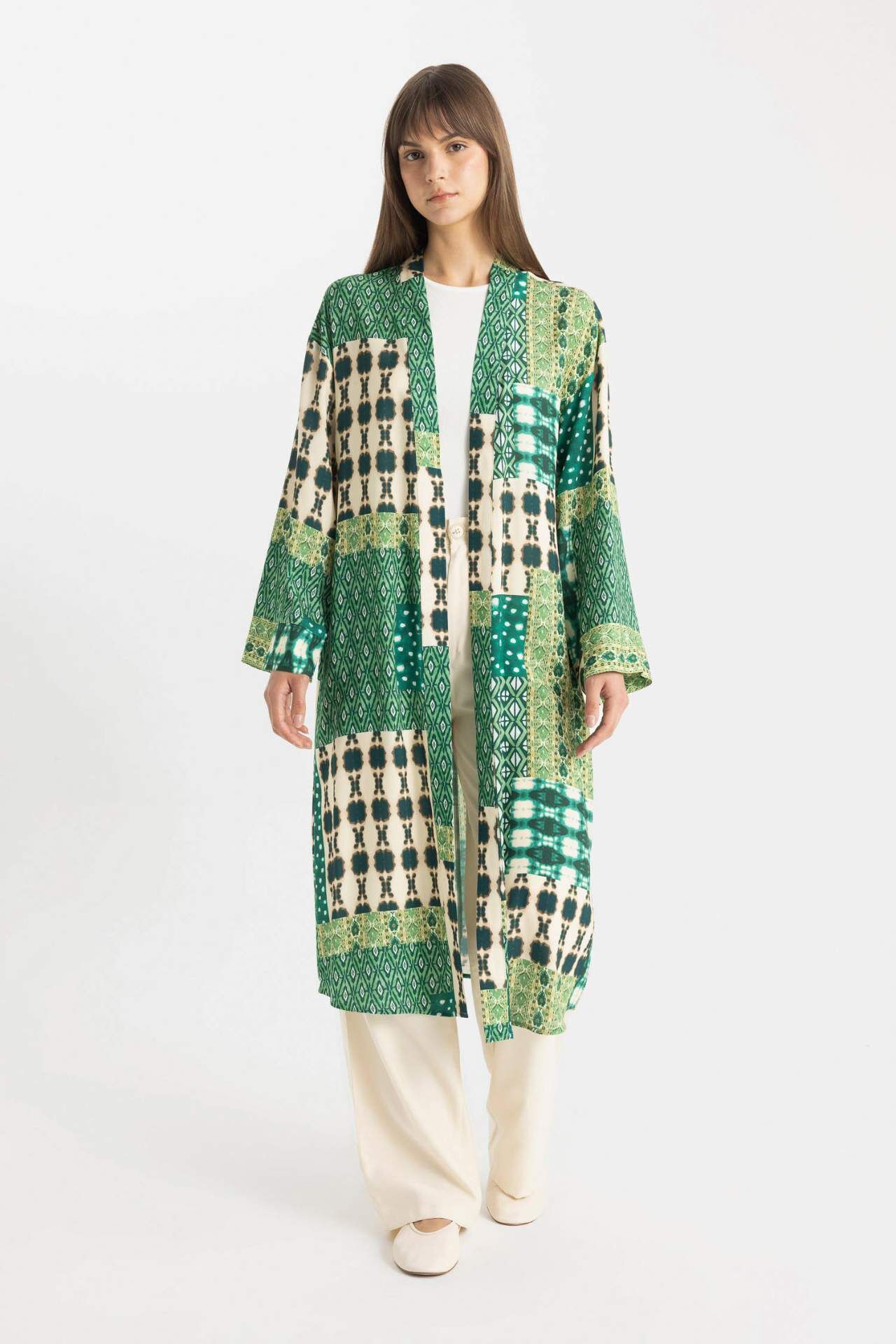 DeFactoFit Relax Fit Desenli Uzun Viskon Kimono