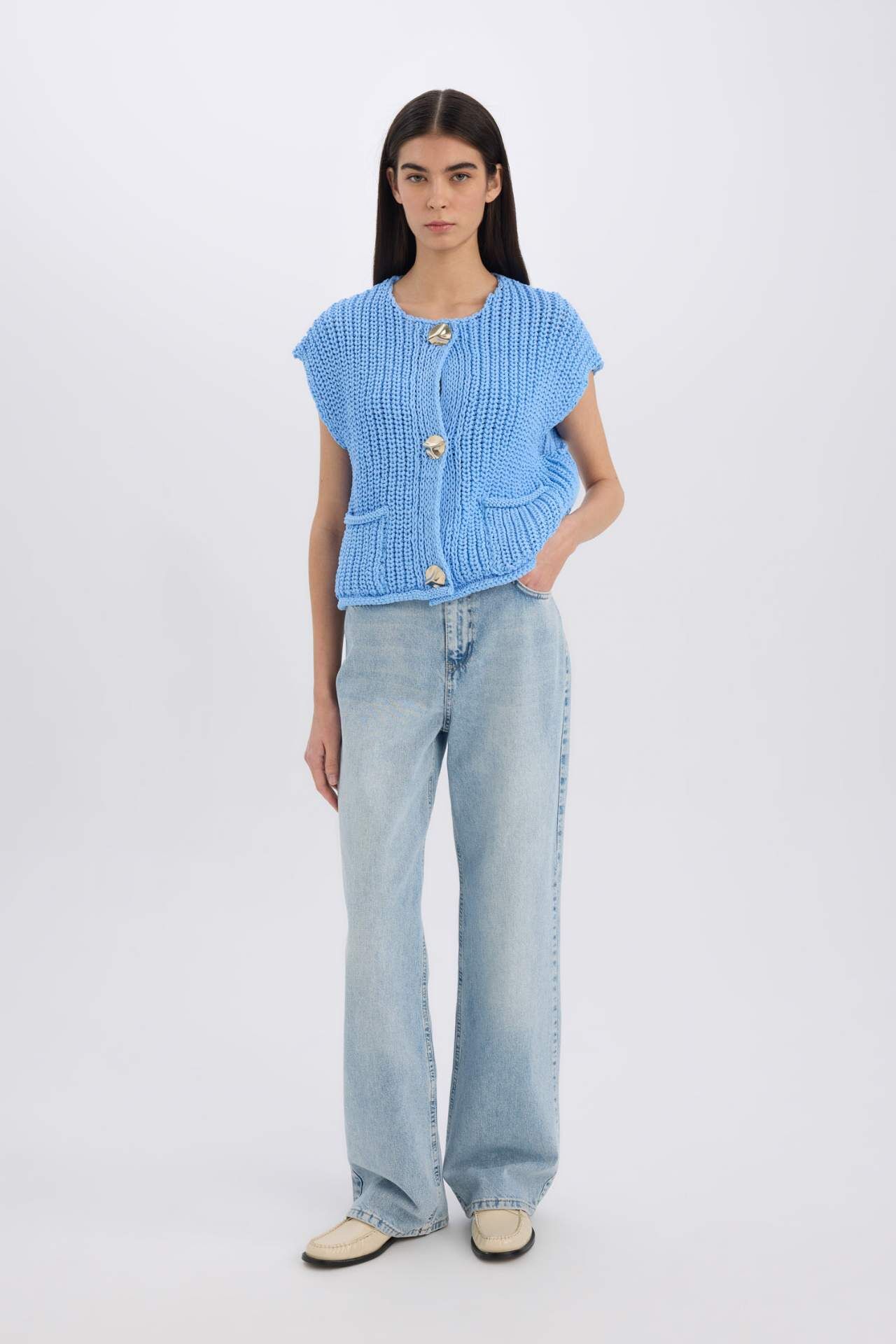 DeFacto Relax Fit Düğme Kapamalı Cepli Triko Yelek
