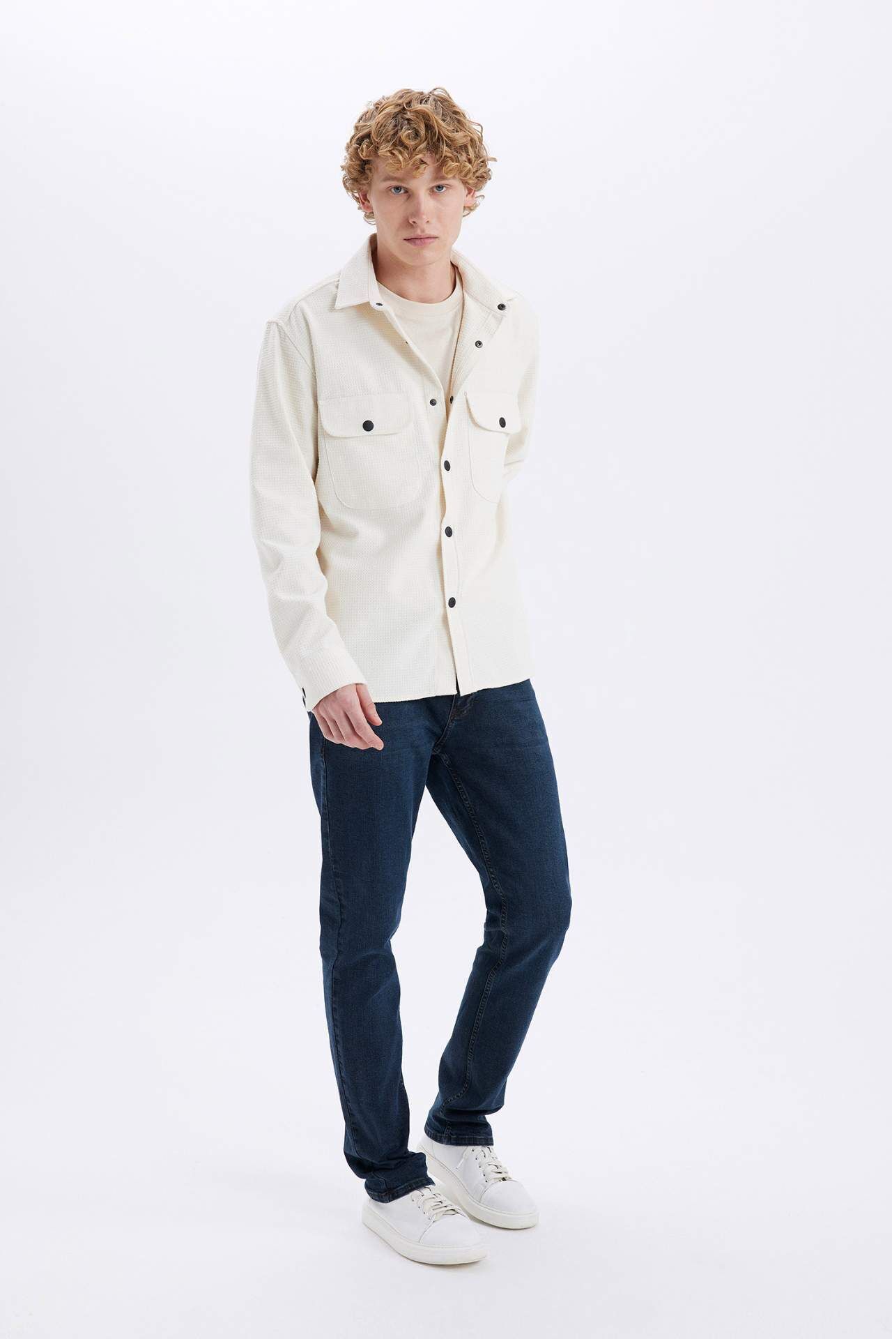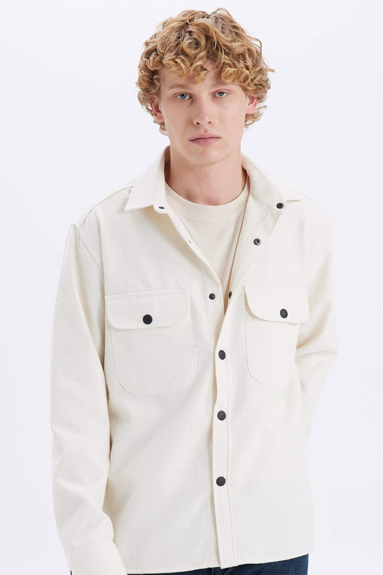 DeFacto Relax Fit Düğmeli Gömlek Yaka Cepli Uzun Kollu Gömlek