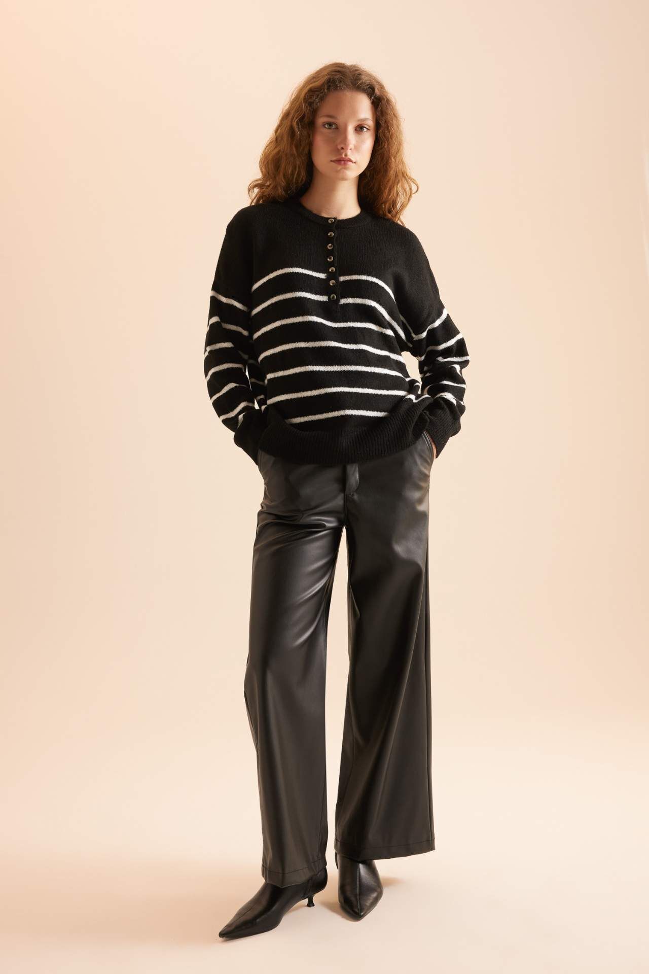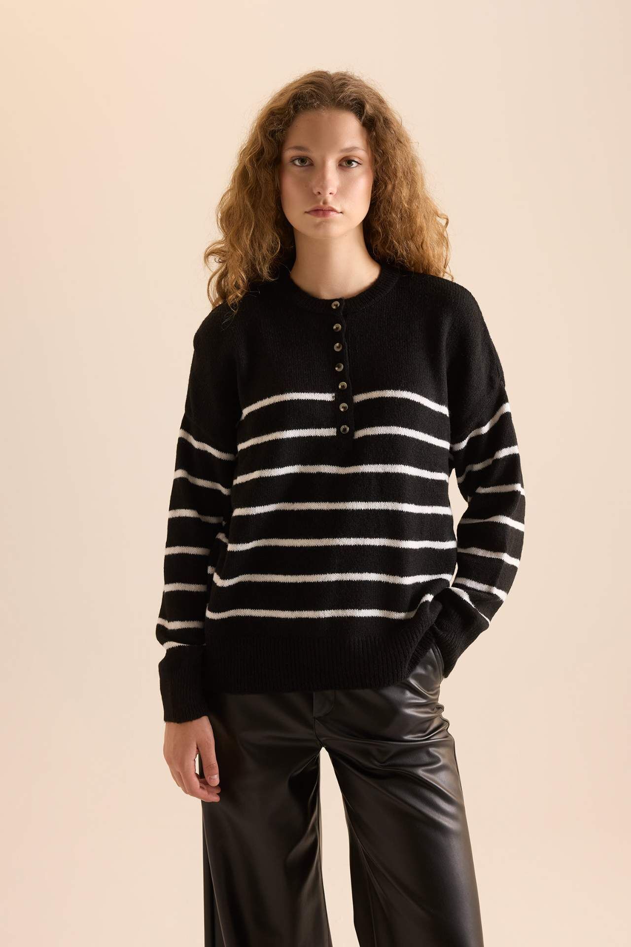 DeFacto Relax Fit Düğmeli Yaka Kazak