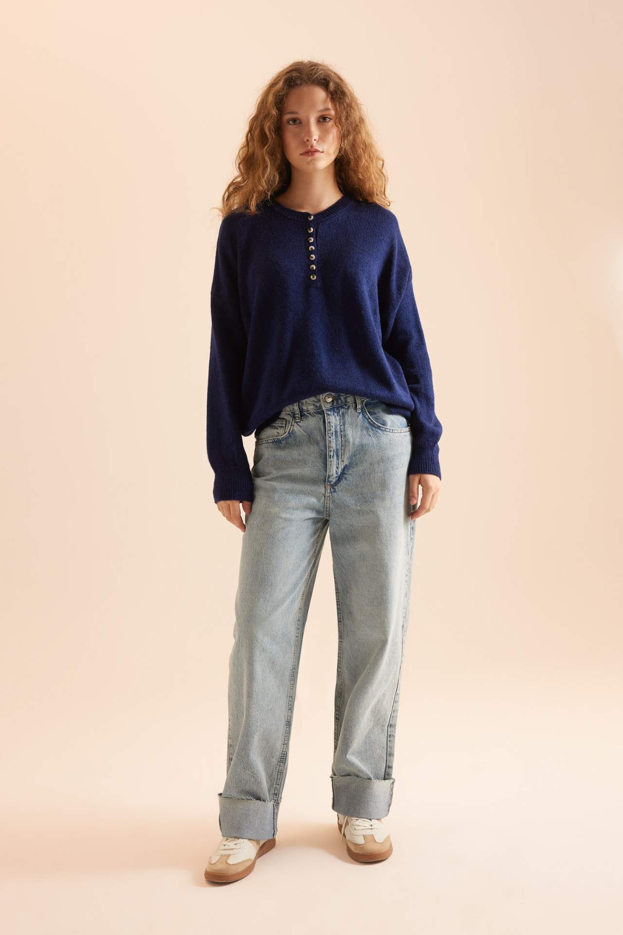 Şık ve rahat, Relax Fit Düğmeli Yaka Kazak, gardırobunuzun vazgeçilmezi olmaya aday. Kaliteli kumaşı ve modern tasarımıyla her stile uyum sağlar. Şıklığı ve konforu bir arada arayanlar için ideal bir seçim. Akrilik 79%,Poliester 21% Manken Bedeni: Göğüs: 78 Boy: 1,74 Basen: 89 Bel: 60