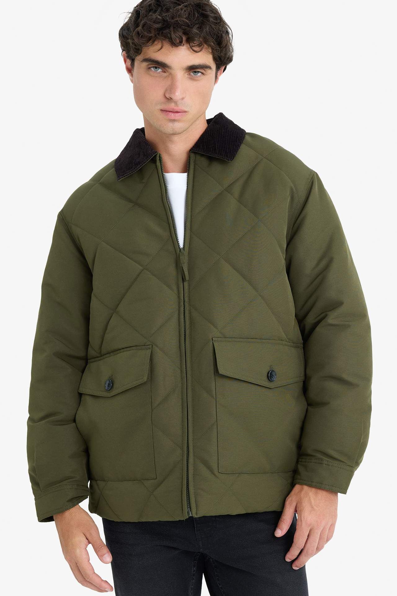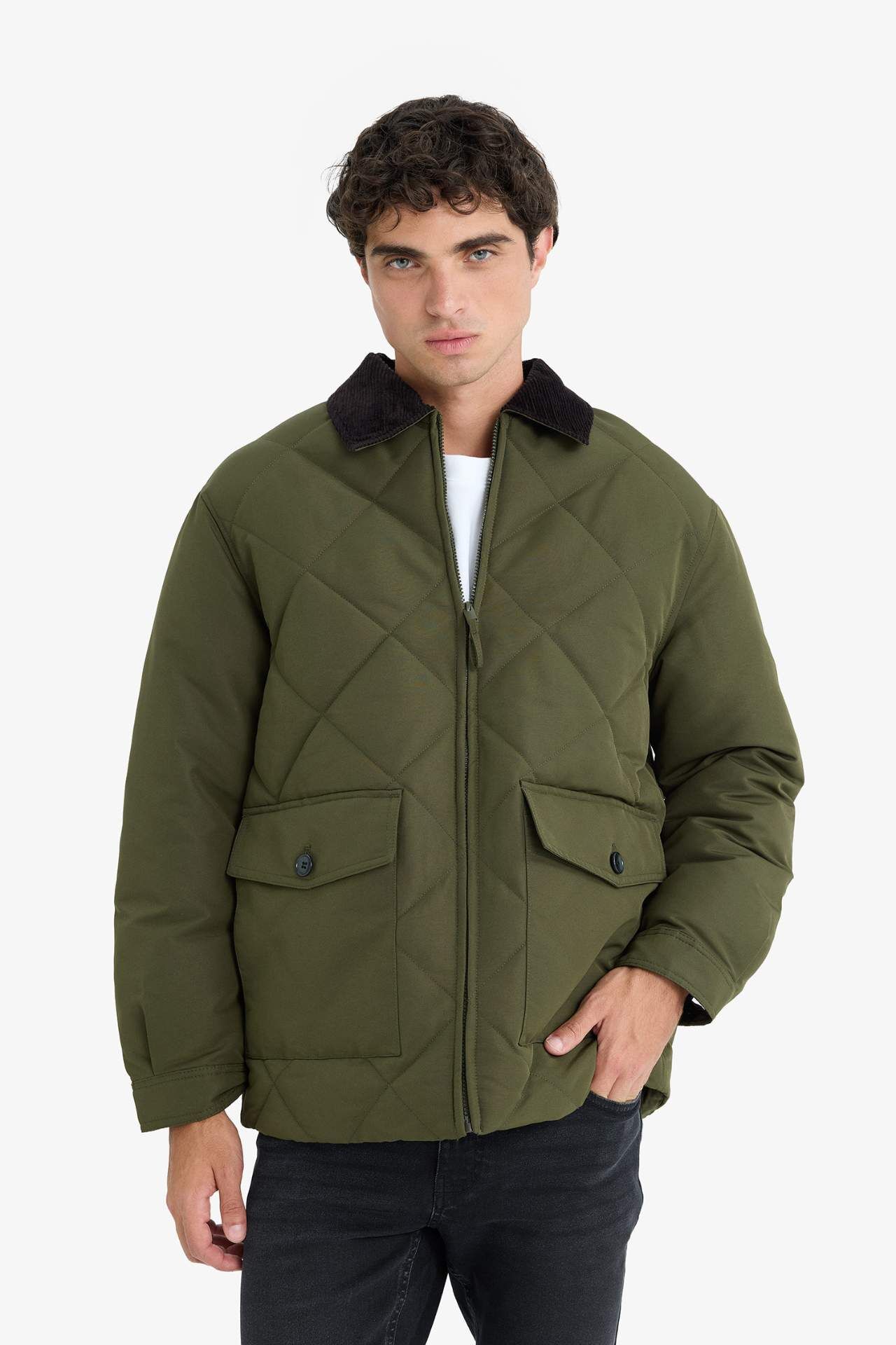 Relax Fit Gömlek Yaka Astarlı Kadife Yakalı Fermuarlı İç Cepli Mont