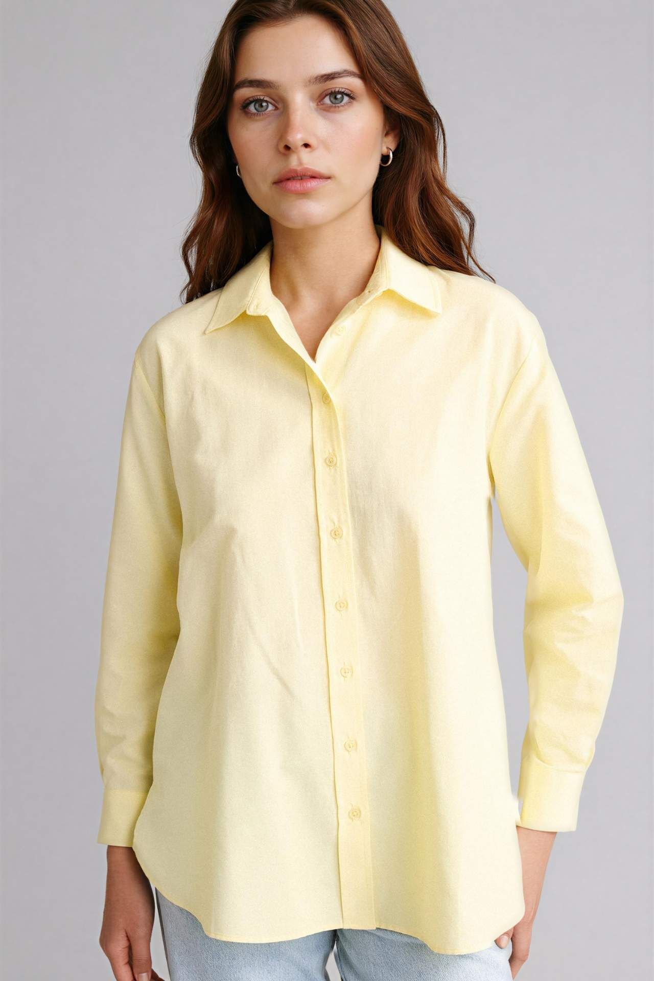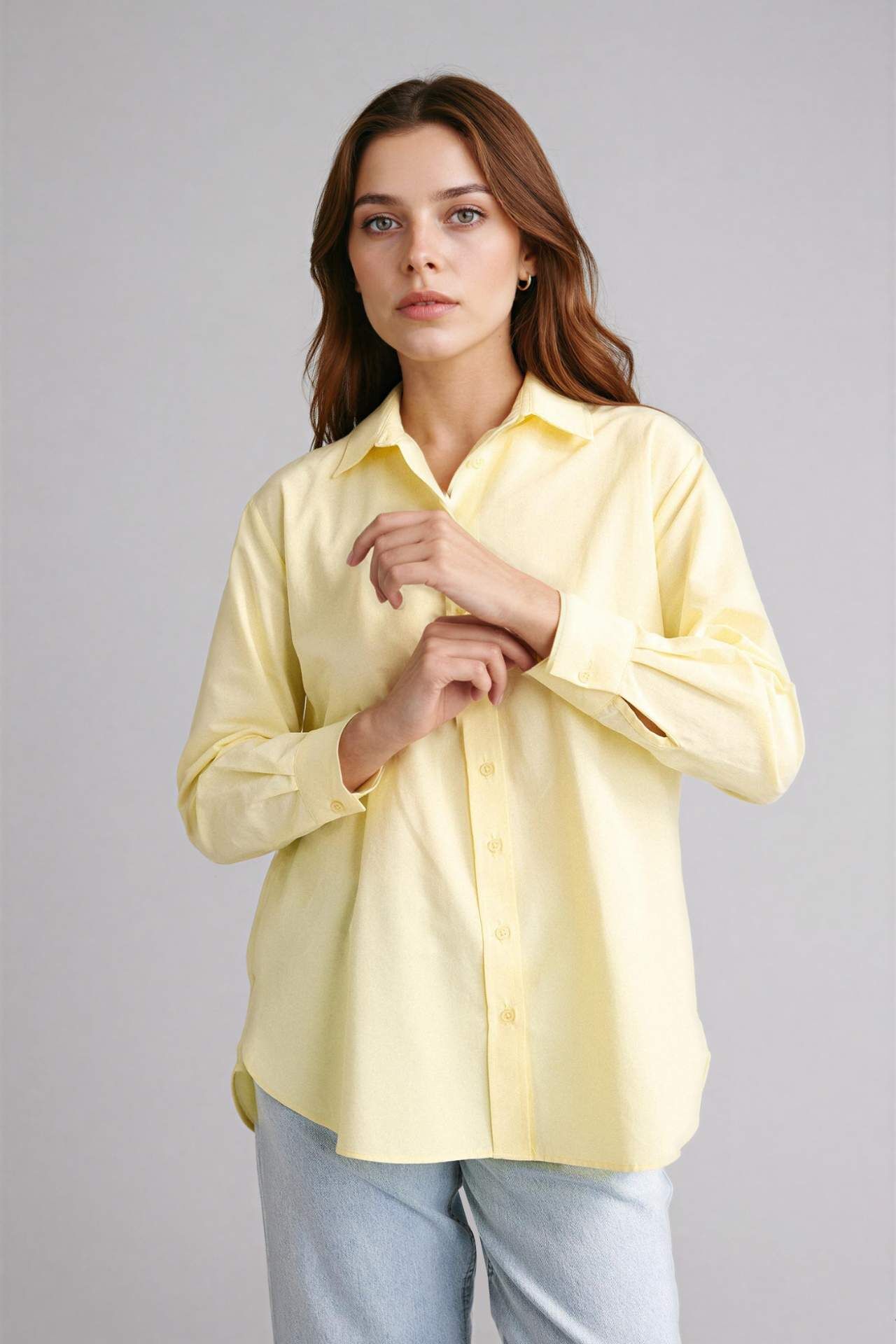 Yetişkinler için, dokuma üst gruplu uzun kollu tunik. Relax fıt kalıbıyla, pamuklu poplin kumaştan yapılmış. İnce kalınlıkta ve temel çeşit arasında yer alıyor. Sarı renk, kadın giyim kategorisi için ideal İlkbahar sezonu için uygun olan gömlek yaka detayıyla 78 cm yüksekliğinde. Pamuk 58%,Poliester 42% Manken Bedeni: Göğüs: 88 Boy: 1,72 Basen: 90 Bel: 60