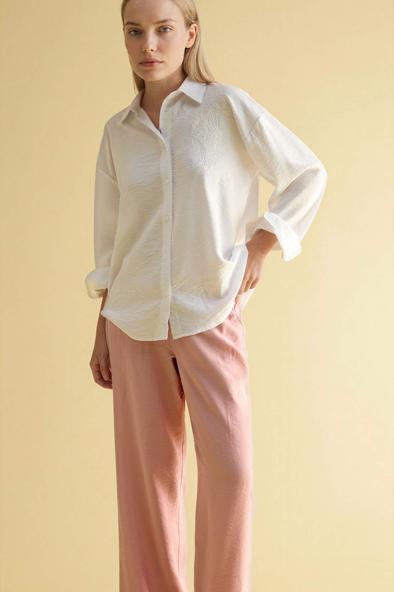 DeFacto Relax Fıt Gömlek Yaka Uzun Kollu Gömlek