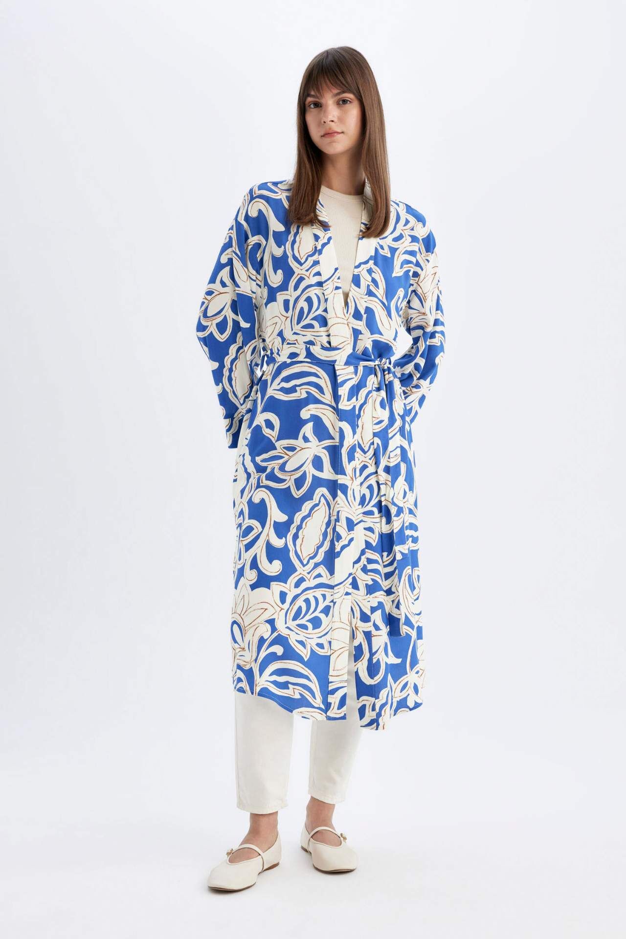 DeFactoFit Relax Fit Hakim Yaka Baskılı Viskon Kimono