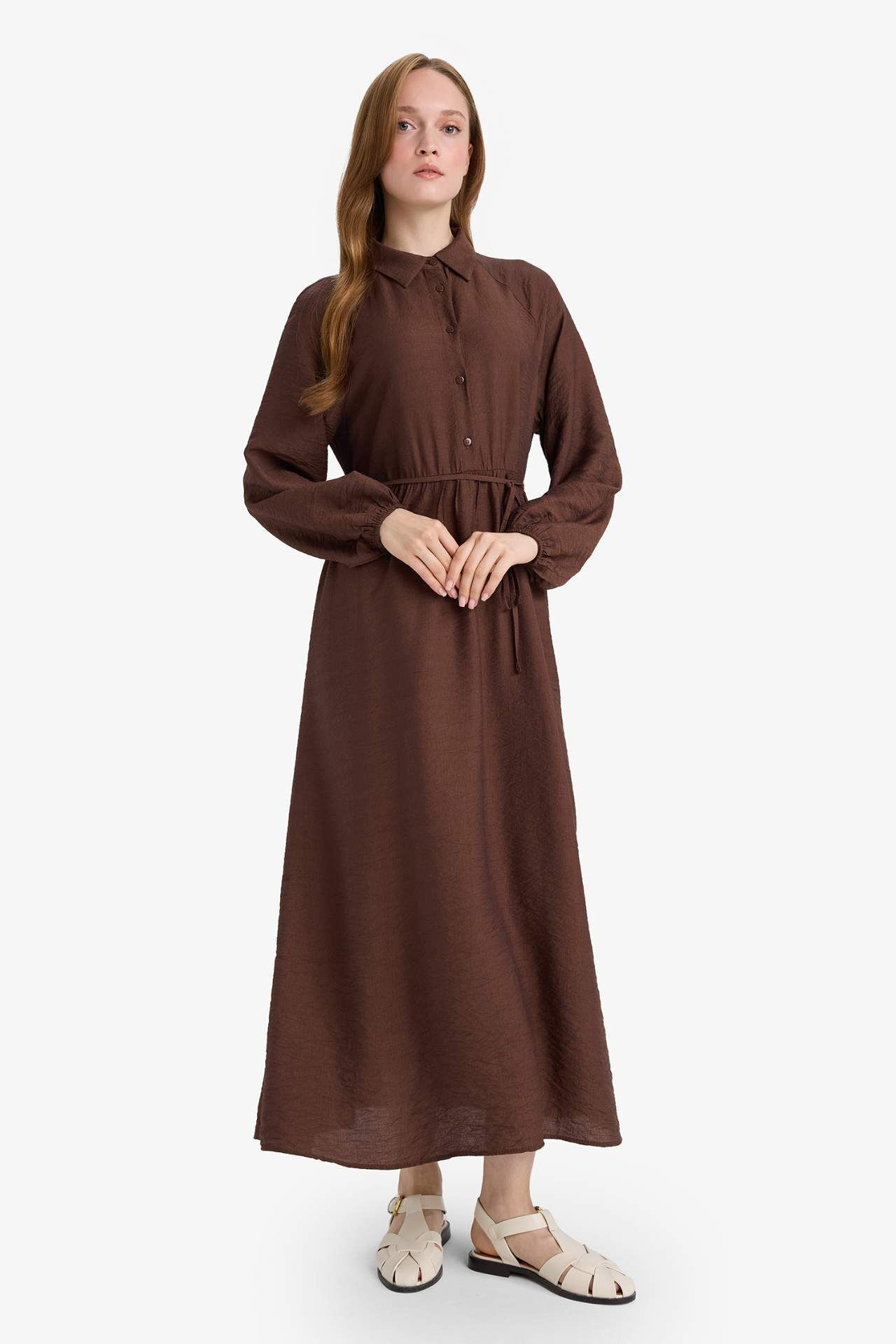 Relax Fit Hakim Yaka Uzun Kollu Elbise