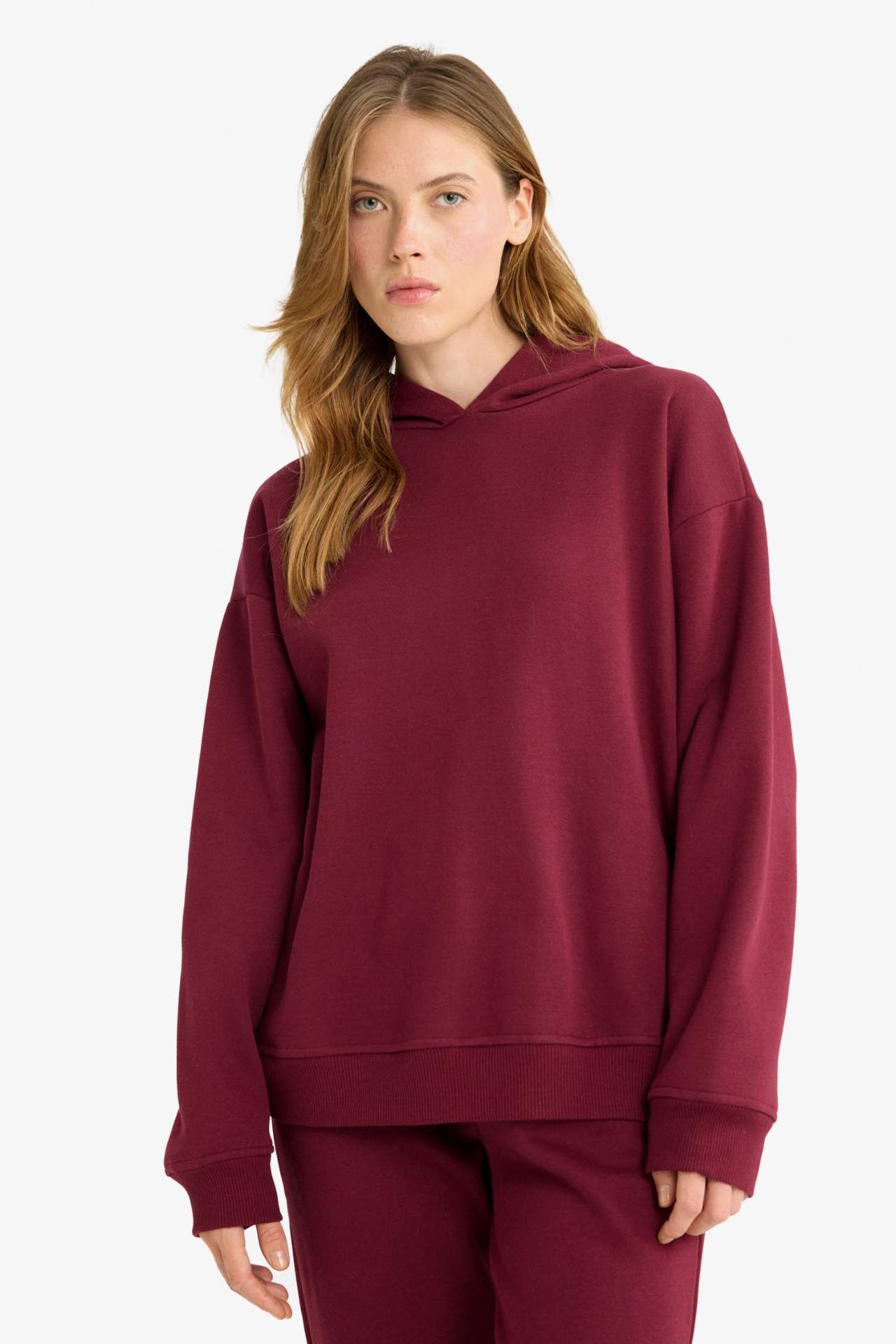 Relax Fit Kapüşonlu Basic Düz Kalın Sweatshirt D9935AX25WNBR115