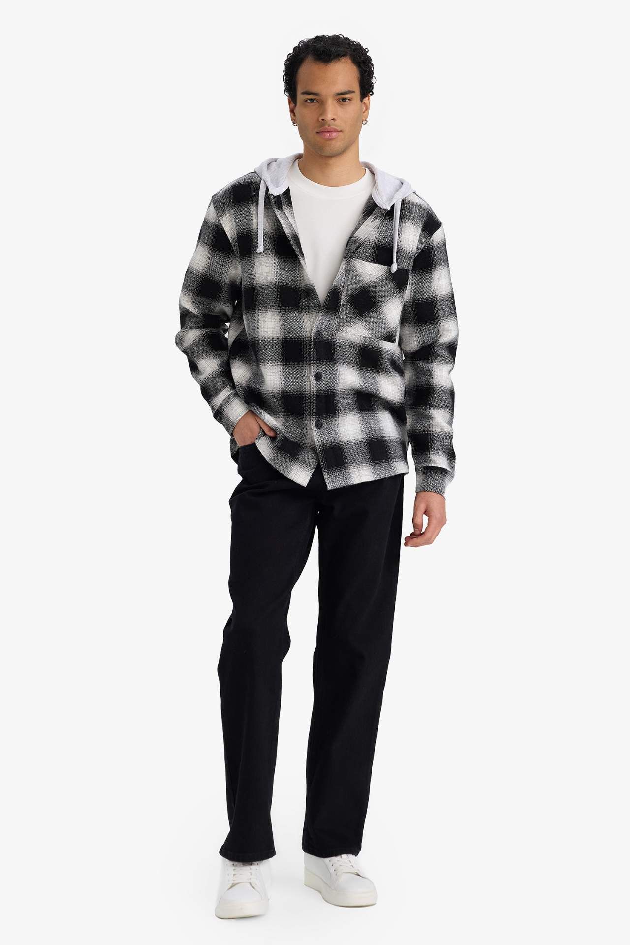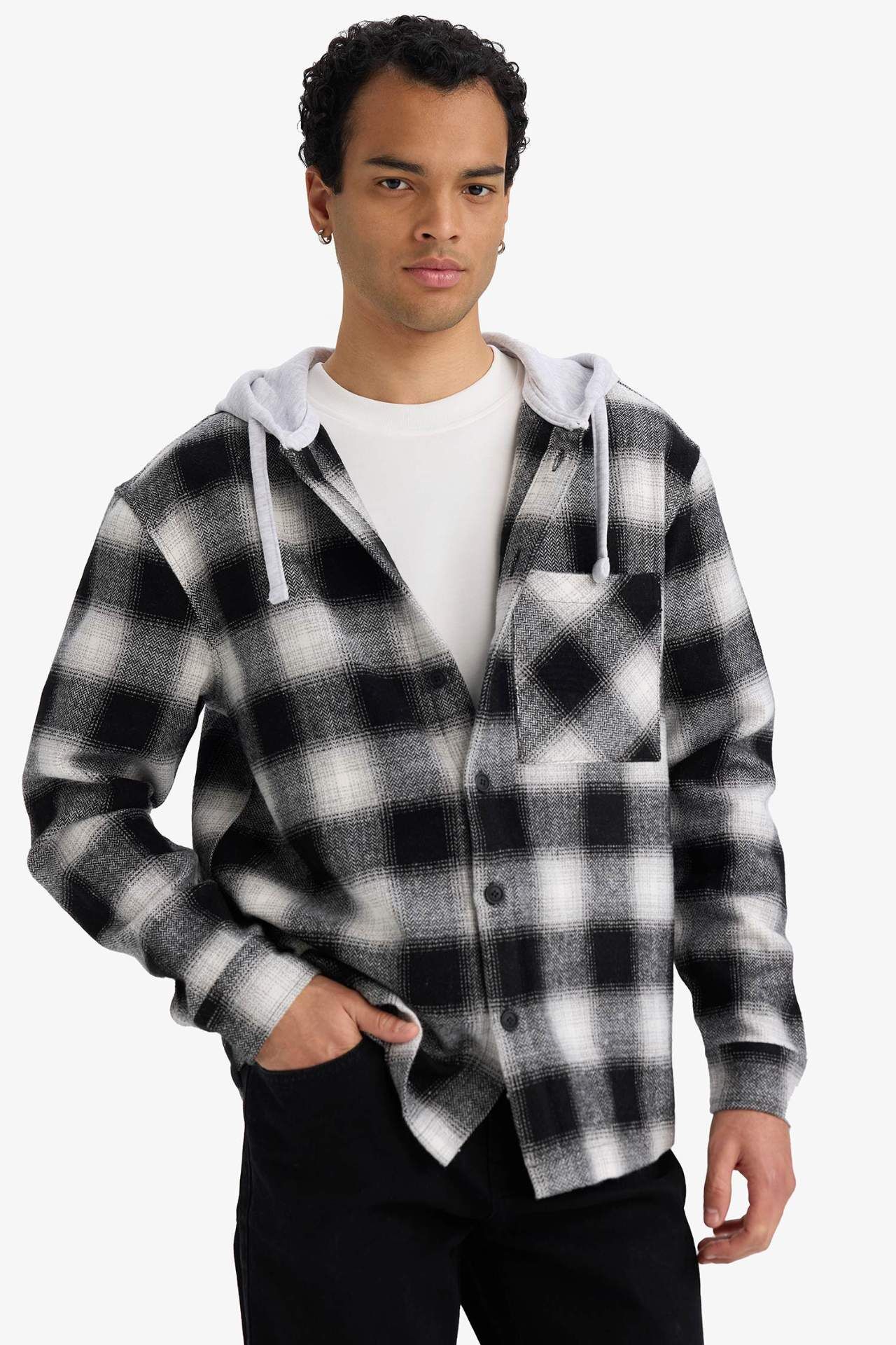 Relax Fit Kapüşonlu Flanel Uzun Kollu Gömlek