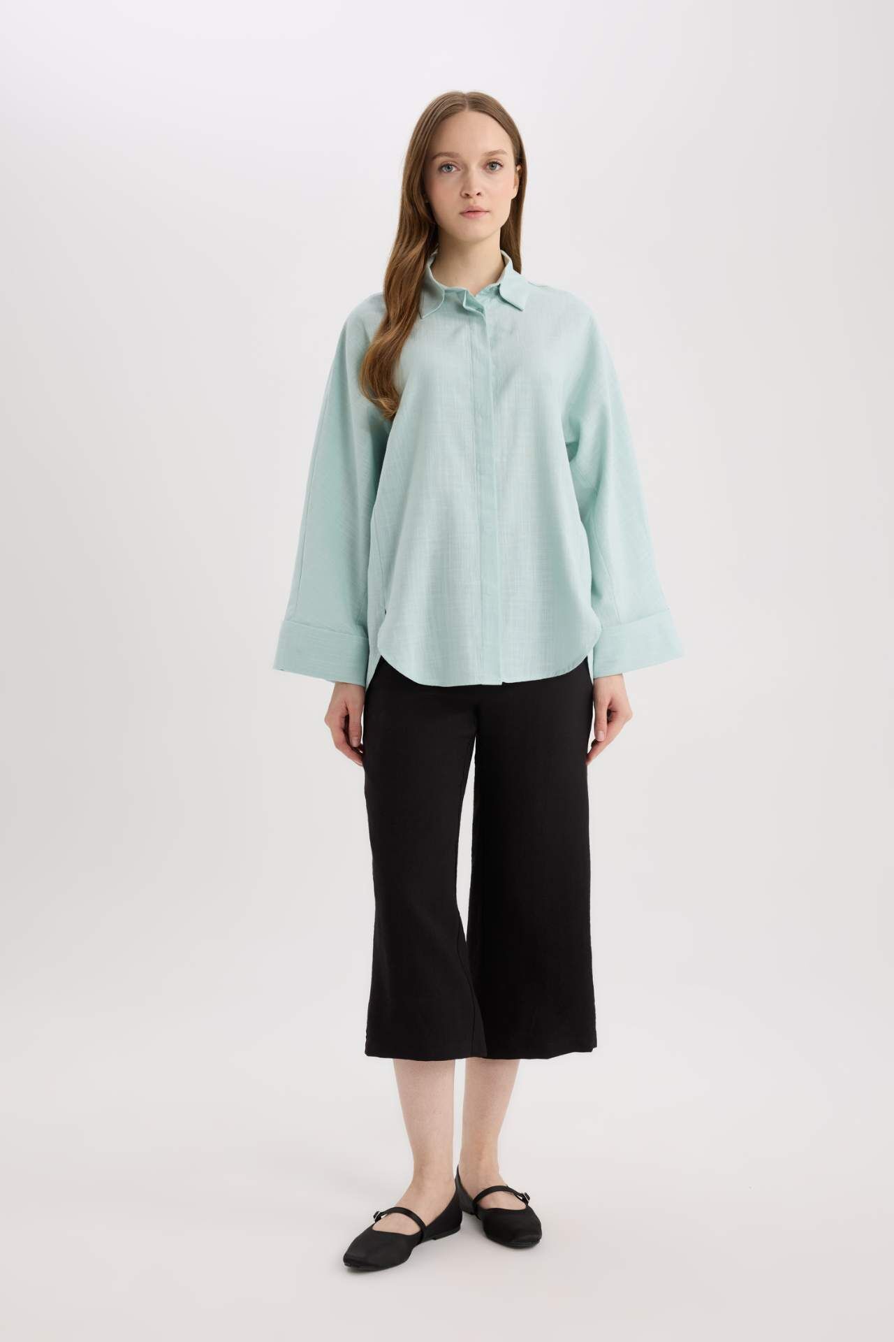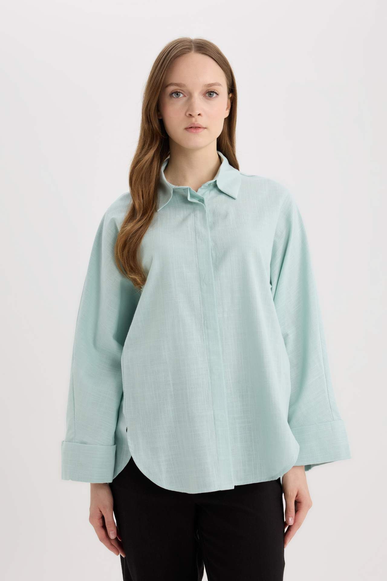 Relax Fit Keten Karışımlı Uzun Kollu Gömlek Tunik