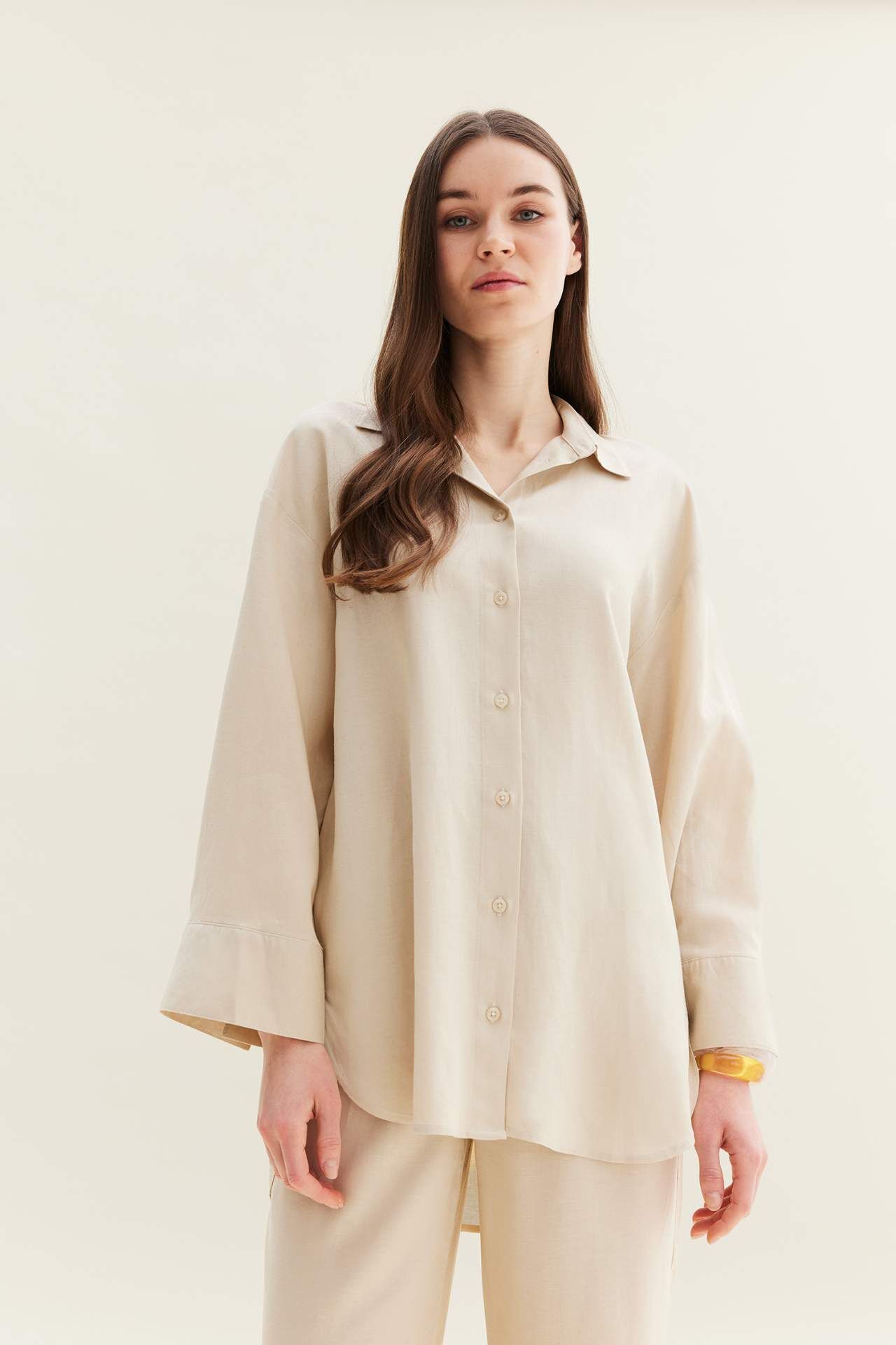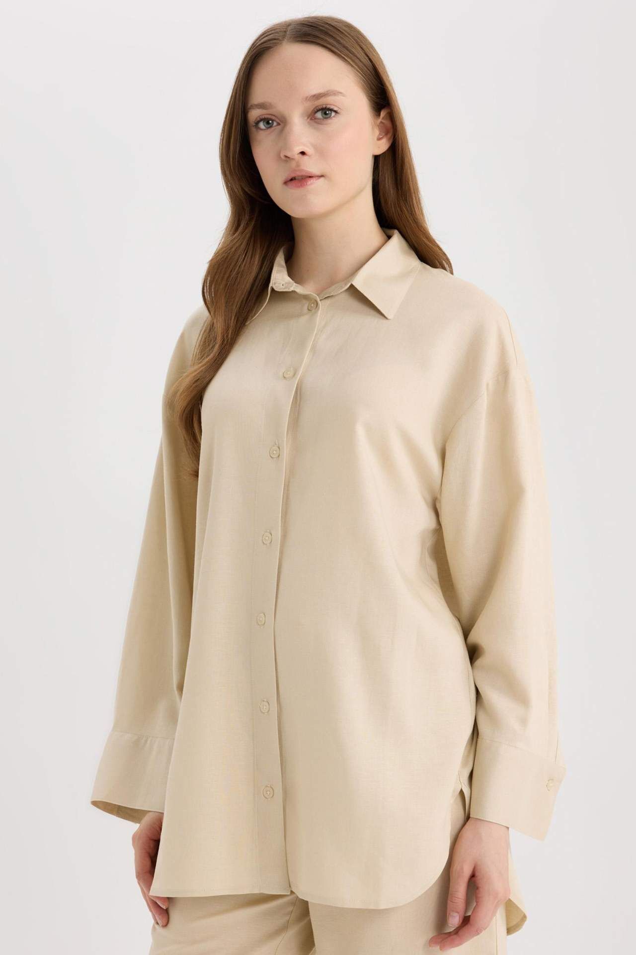 Relax Fit Keten Karışımlı Uzun Kollu GömlekTunik