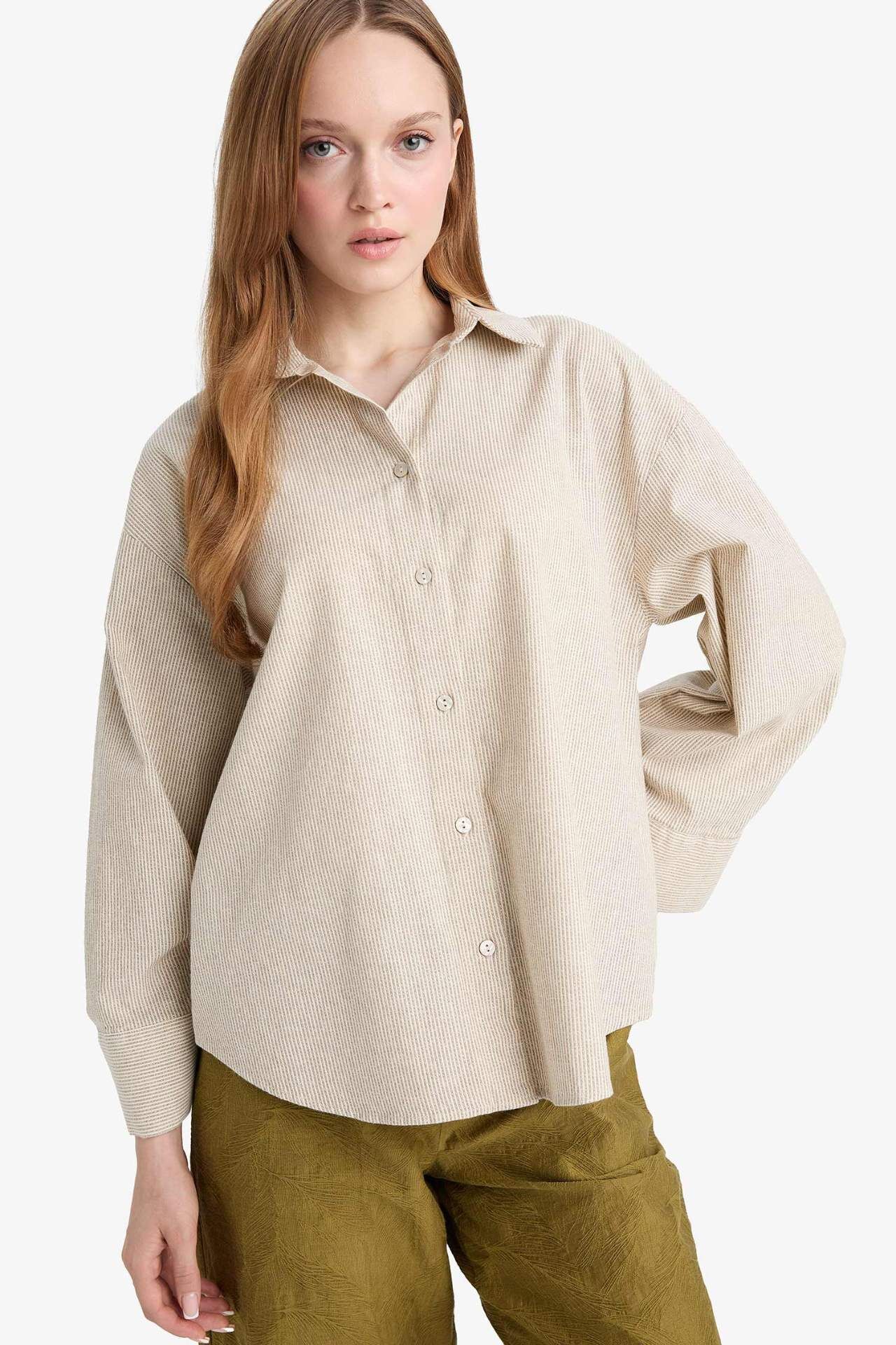 Relax Fit Keten Uzun Kollu Gömlek