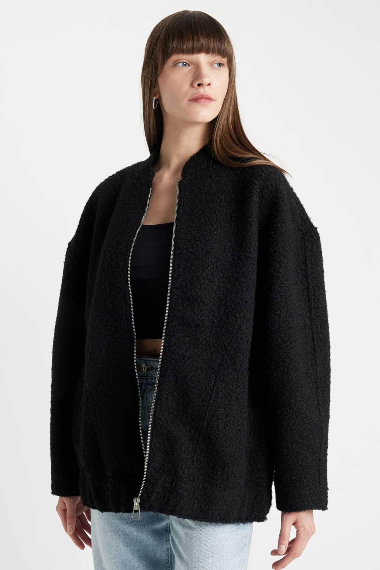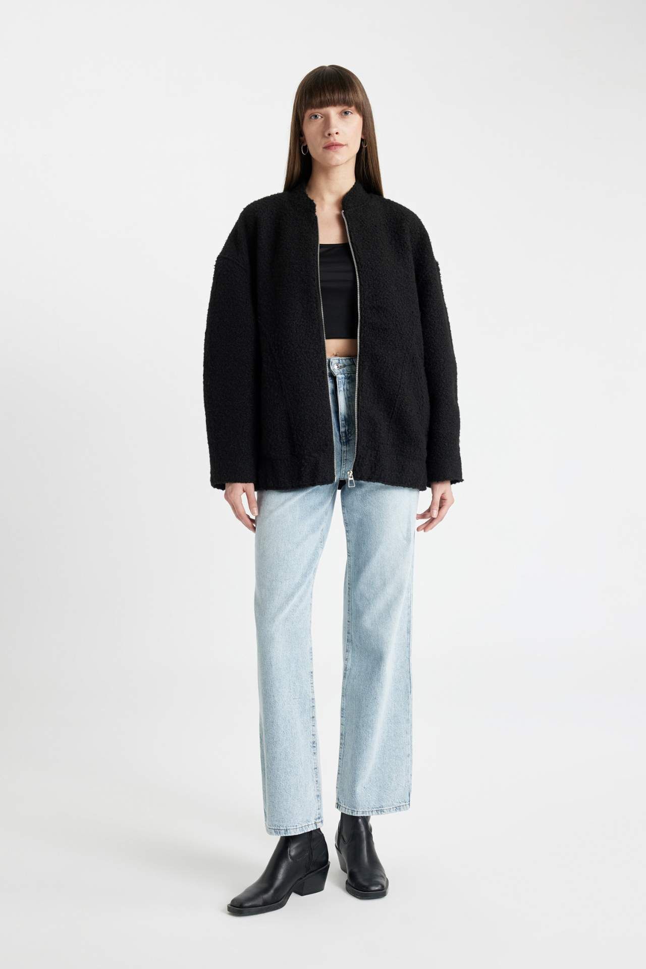 DeFacto Relax Fit Kolej Yaka Tafta Kaşe Bomber Mont