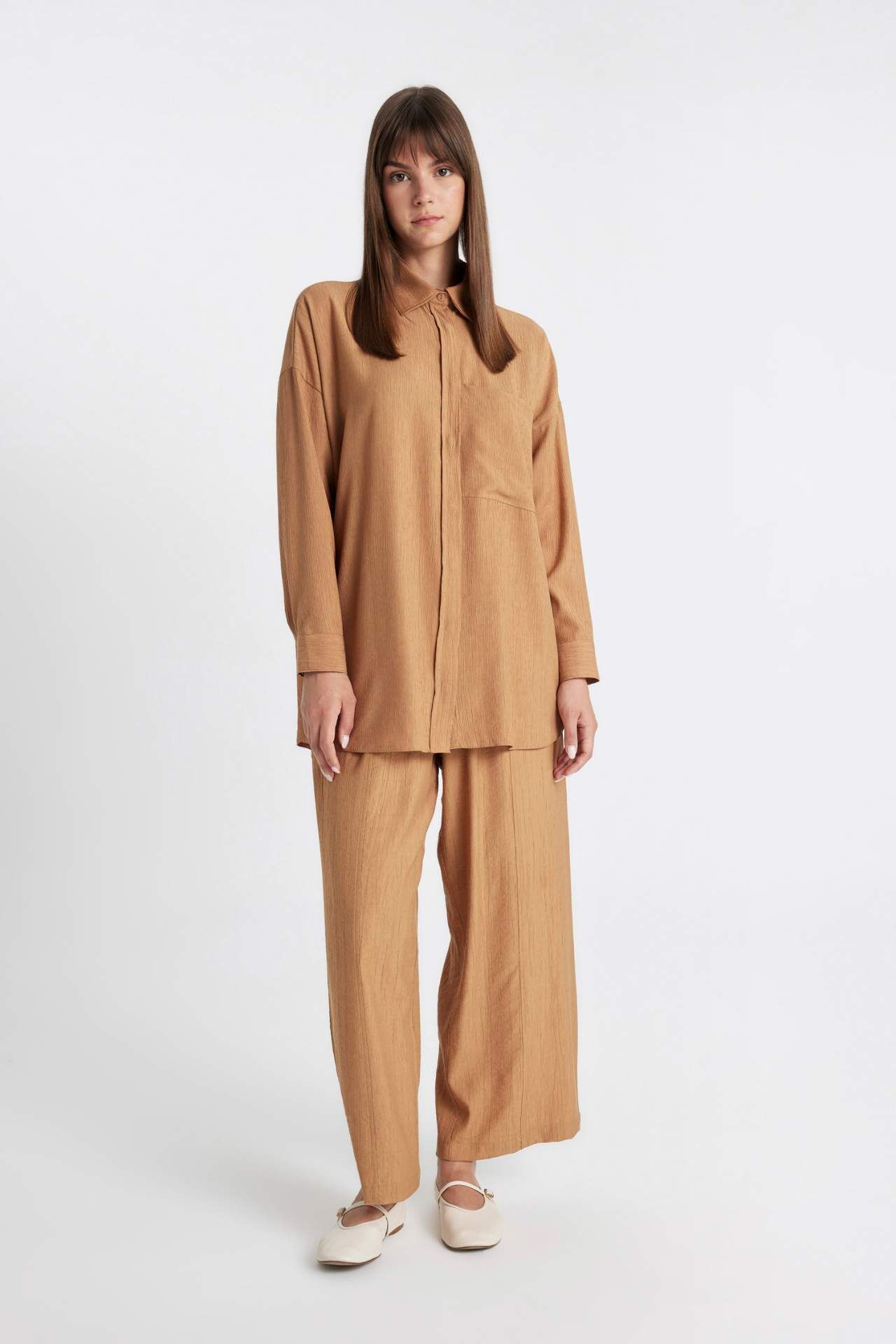 Relax Fit Krinkıl Kumaş Uzun Kollu Tunik