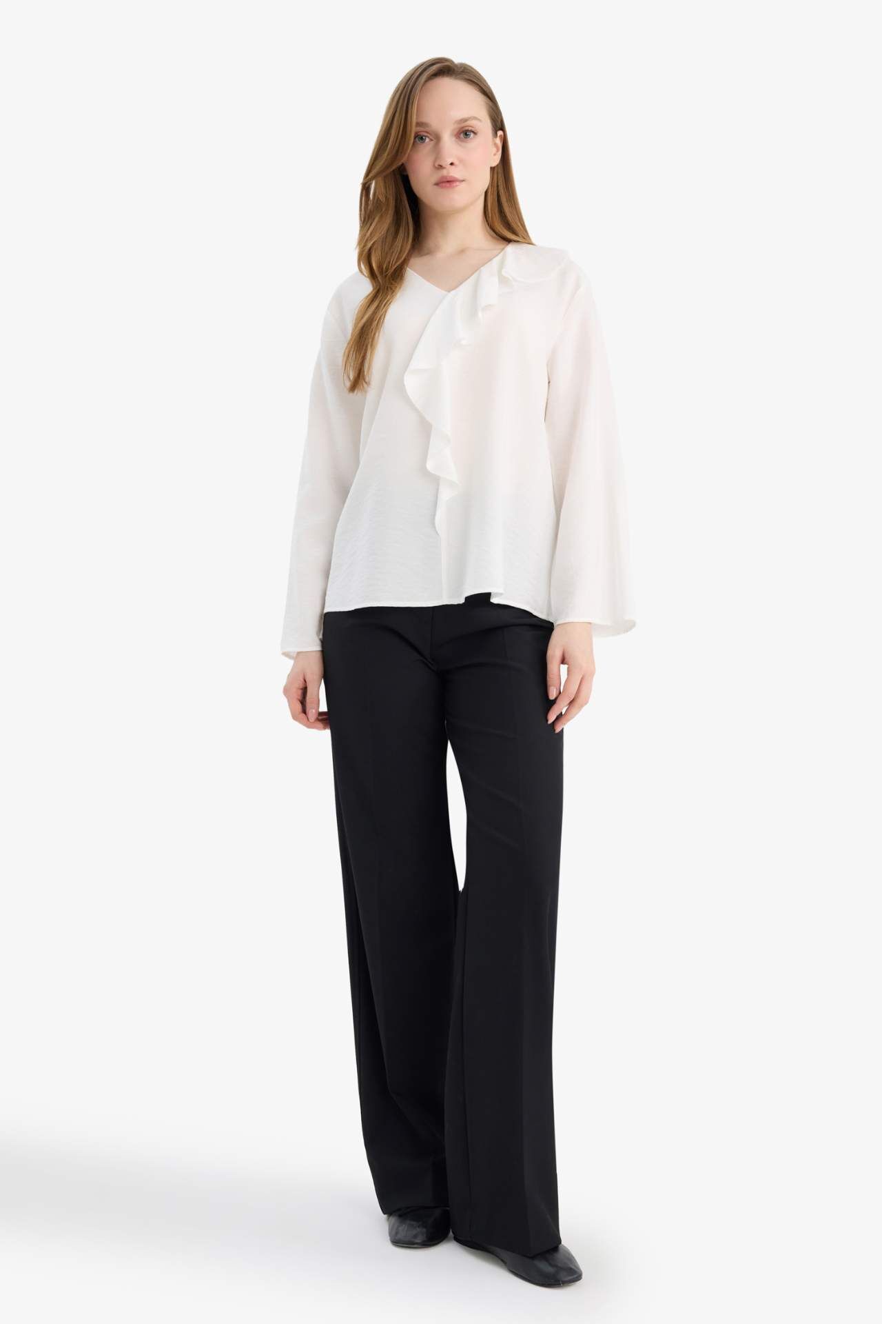 Relax Fit Krinkıl Kumaş Volanlı Bluz