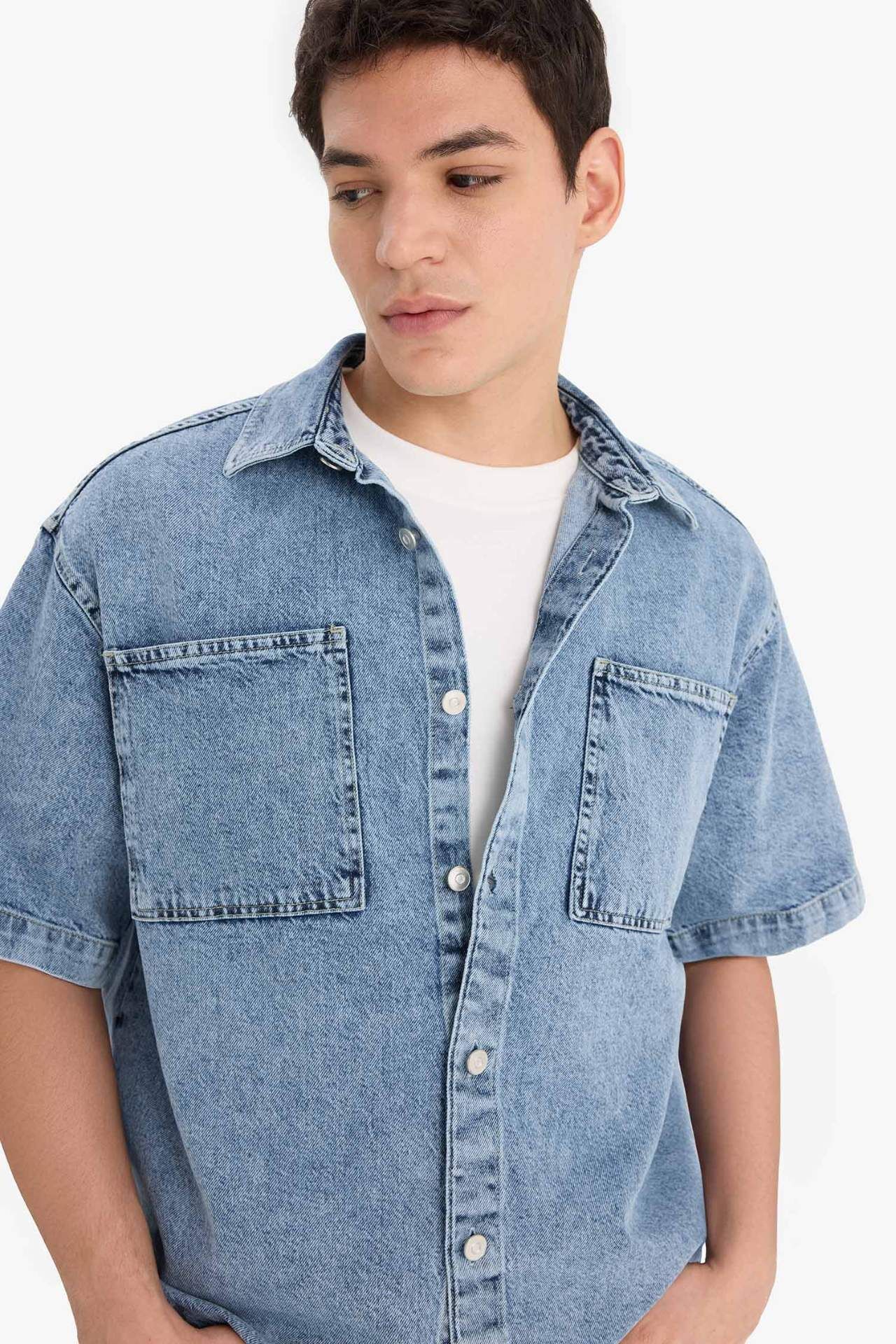 DeFacto Relax Fit Pamuklu Yazlık Kısa Kollu Jean Gömlek