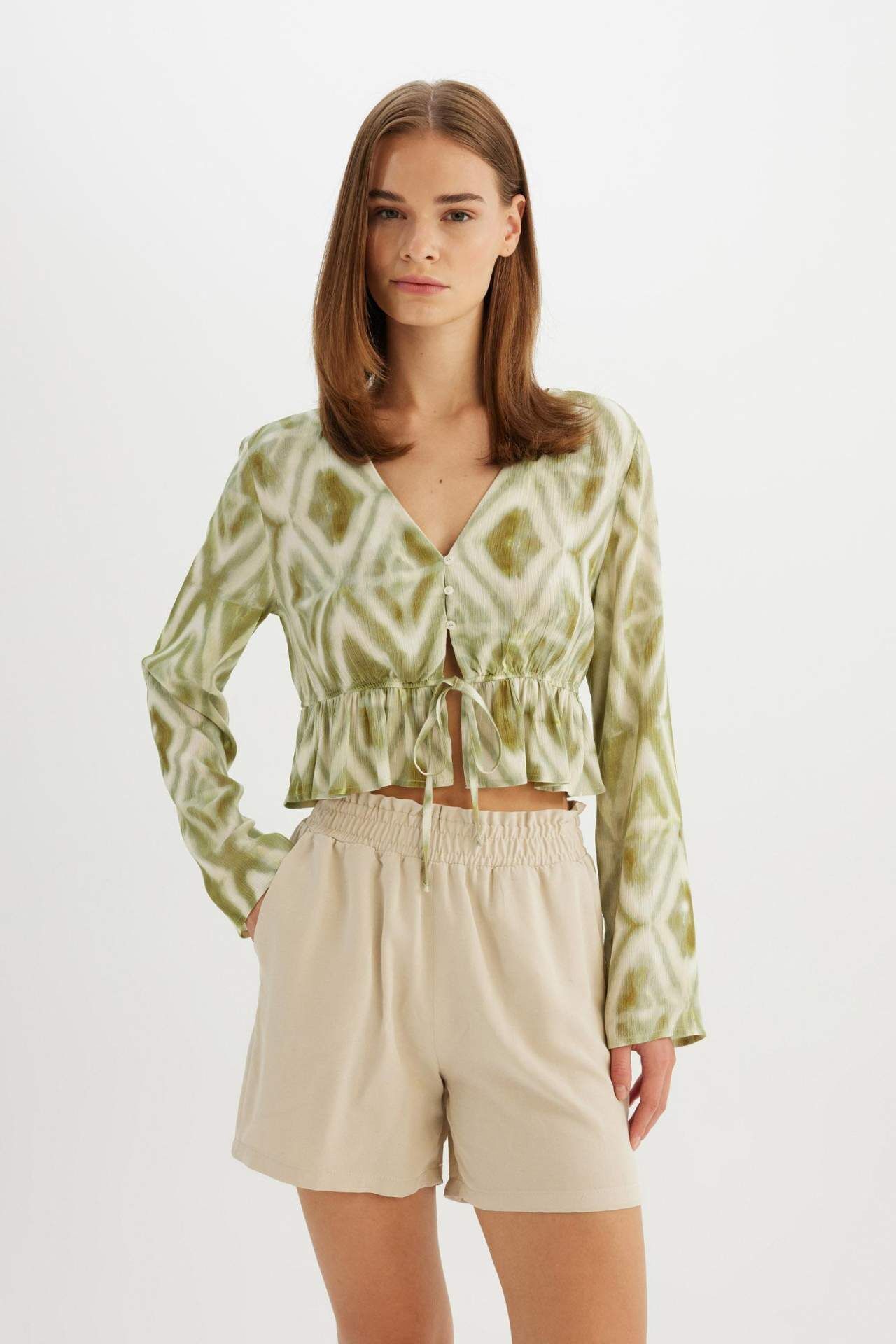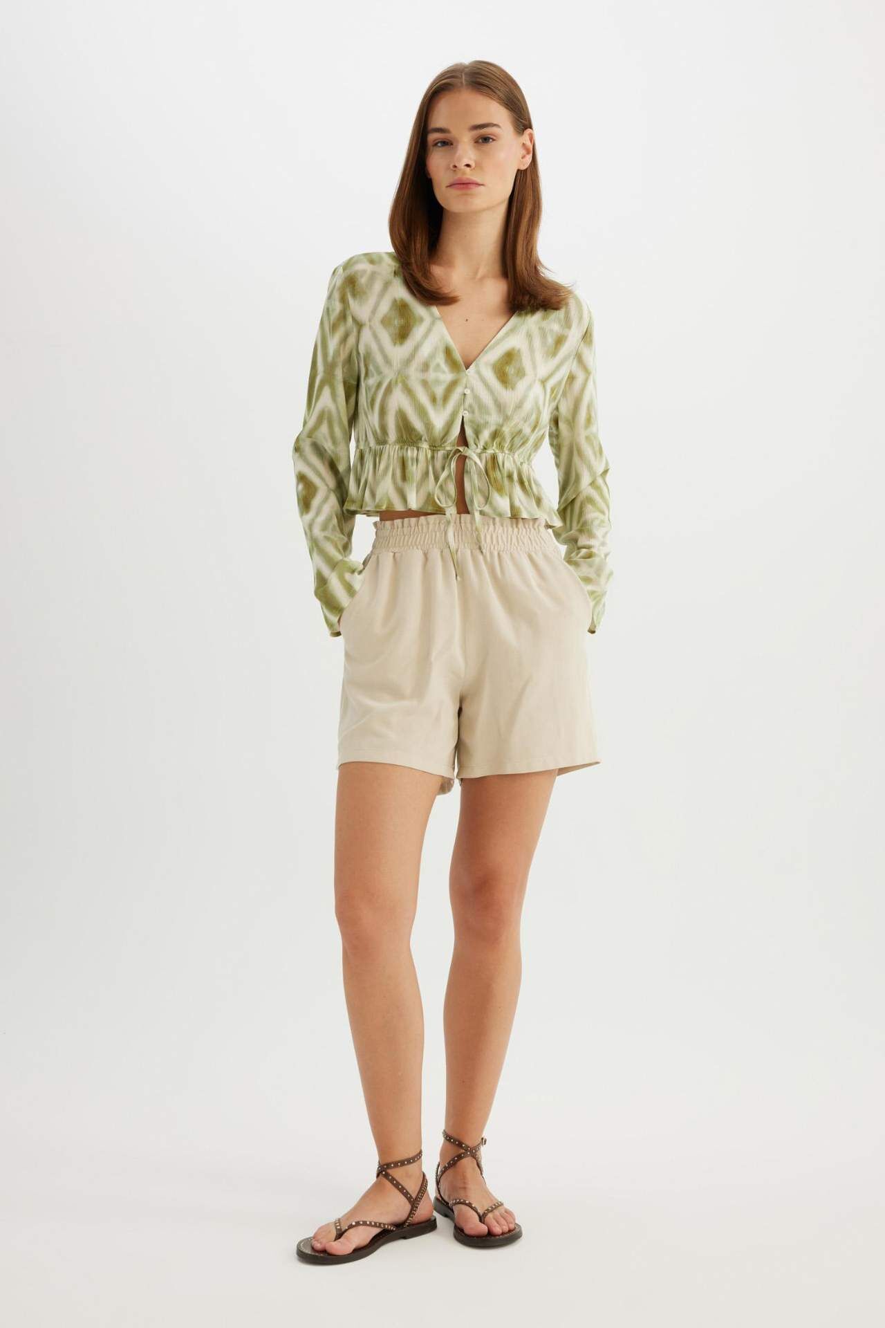 DeFactoFit Relax Fit Paperbag Bel Geniş Paça Keten Karışımlı Şort D3944AX24SMBG737