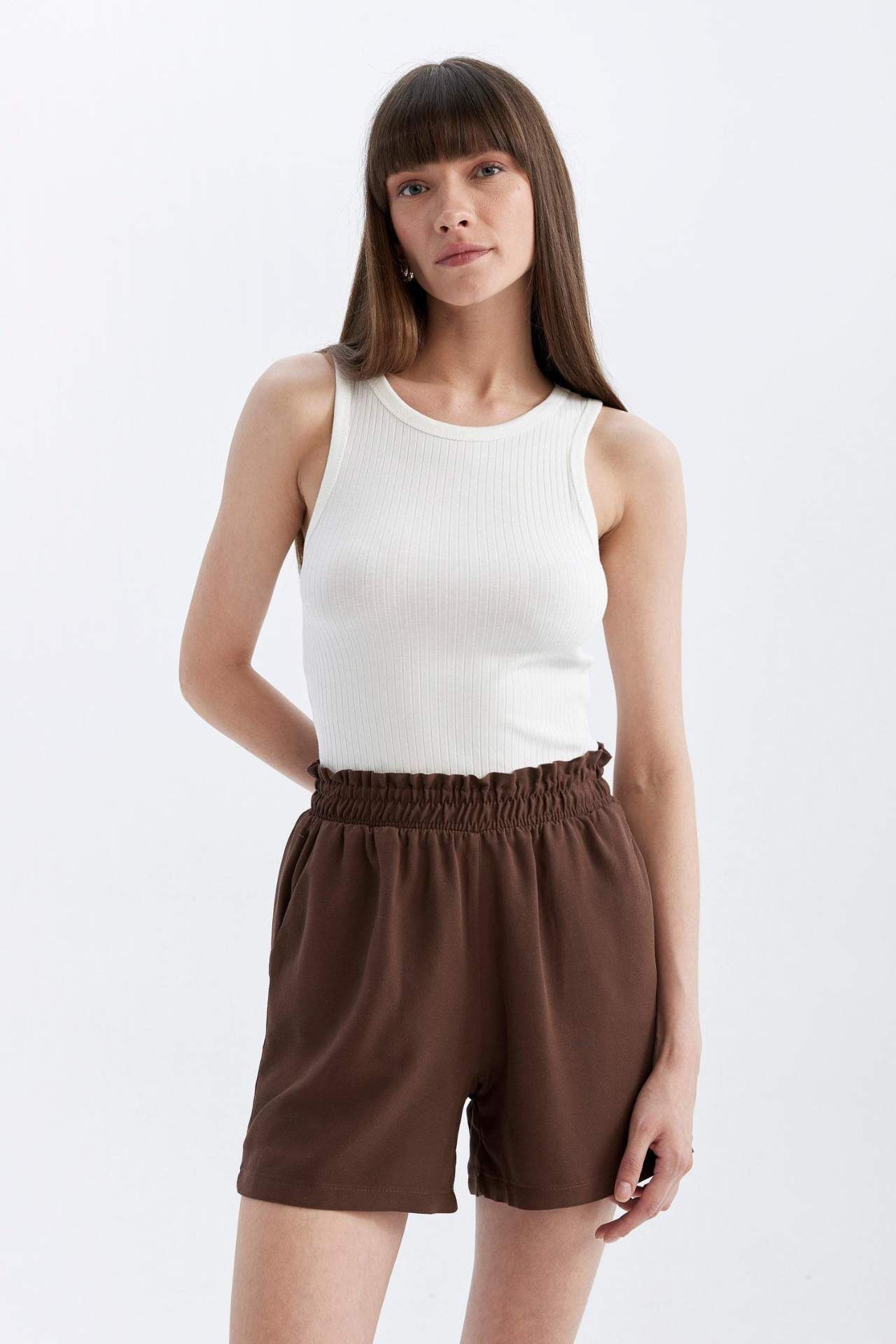 DeFactoFit Relax Fit Paperbag Bel Geniş Paça Keten Karışımlı Şort D3944AX24SMBN480