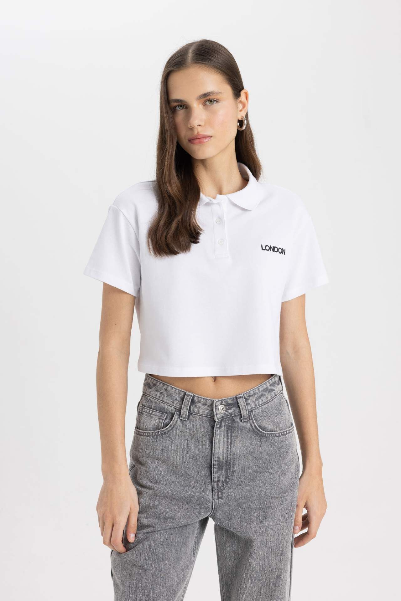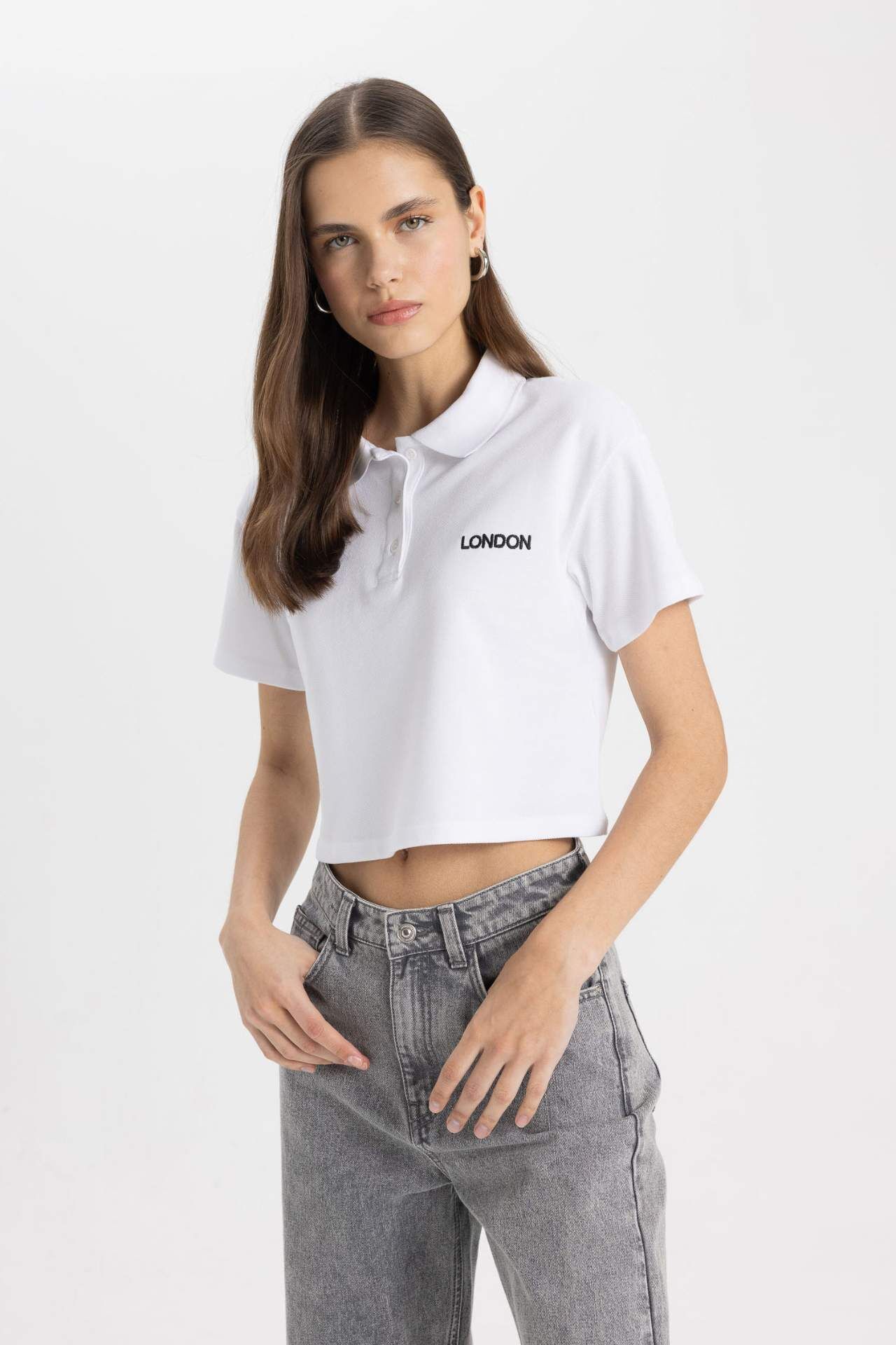 DeFacto Relax Fit Polo Yaka Baskılı Kısa Kollu Tişört