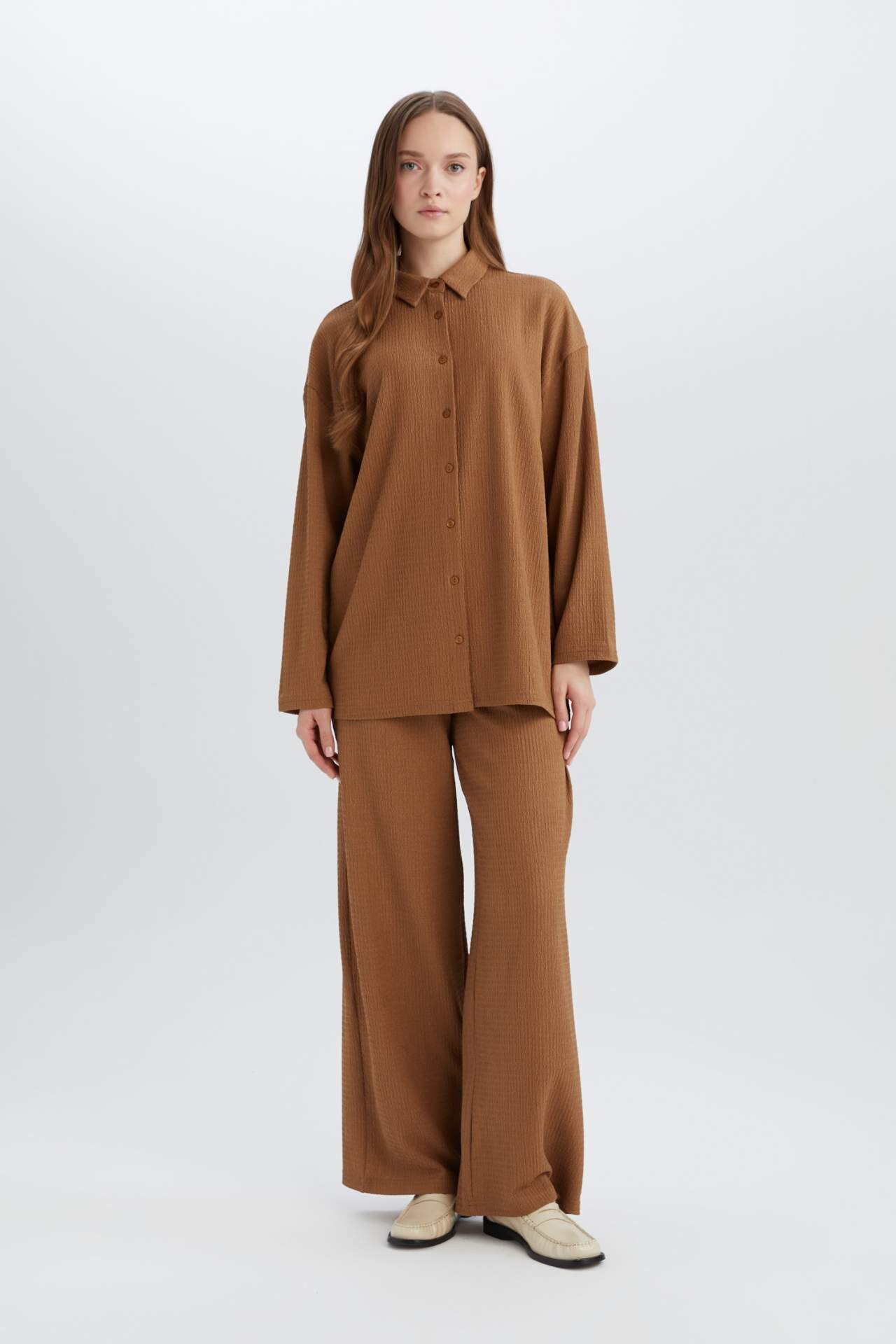 Relax Fit Polo Yaka Bürümcük Uzun Kollu Gömlek