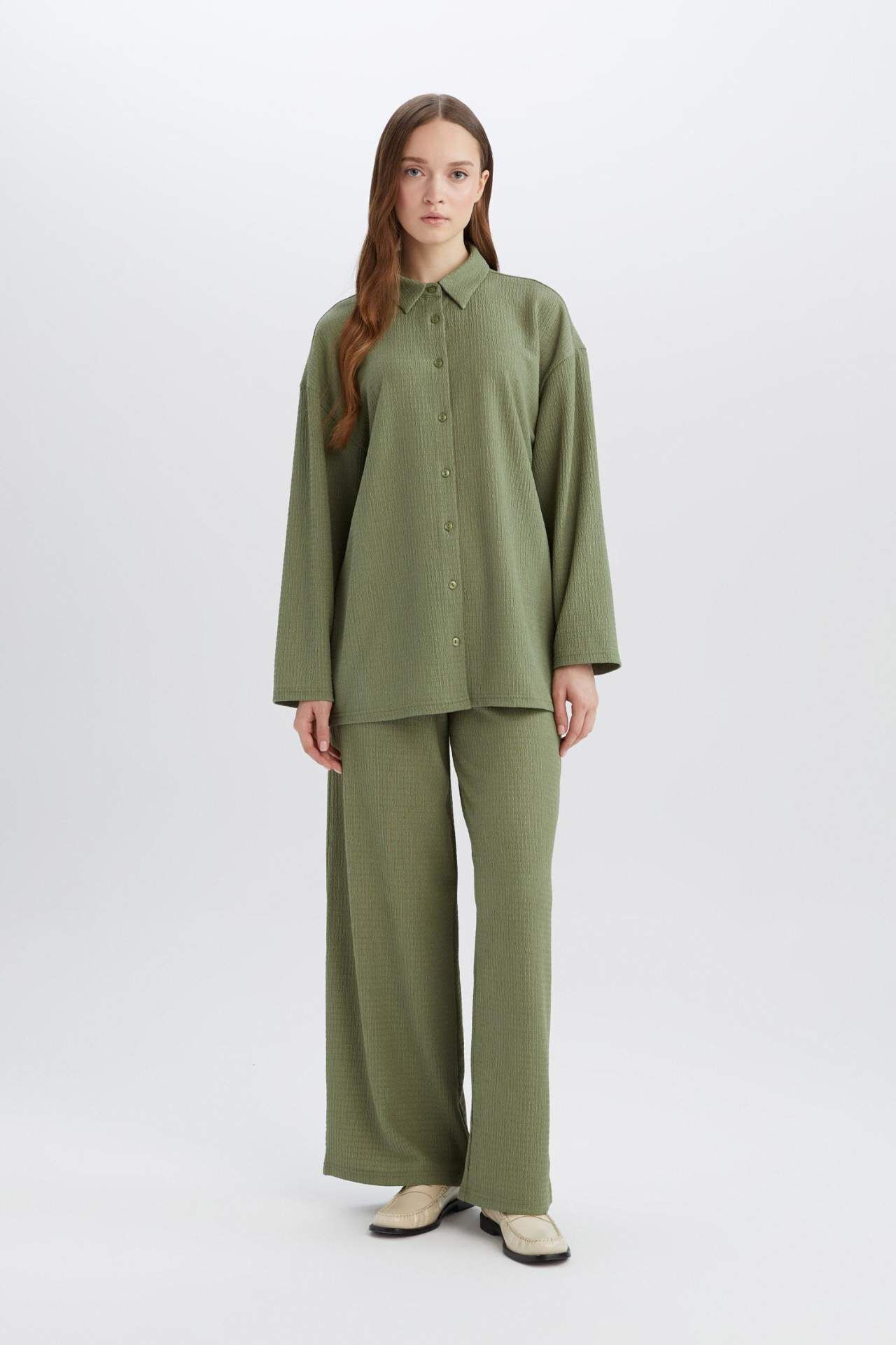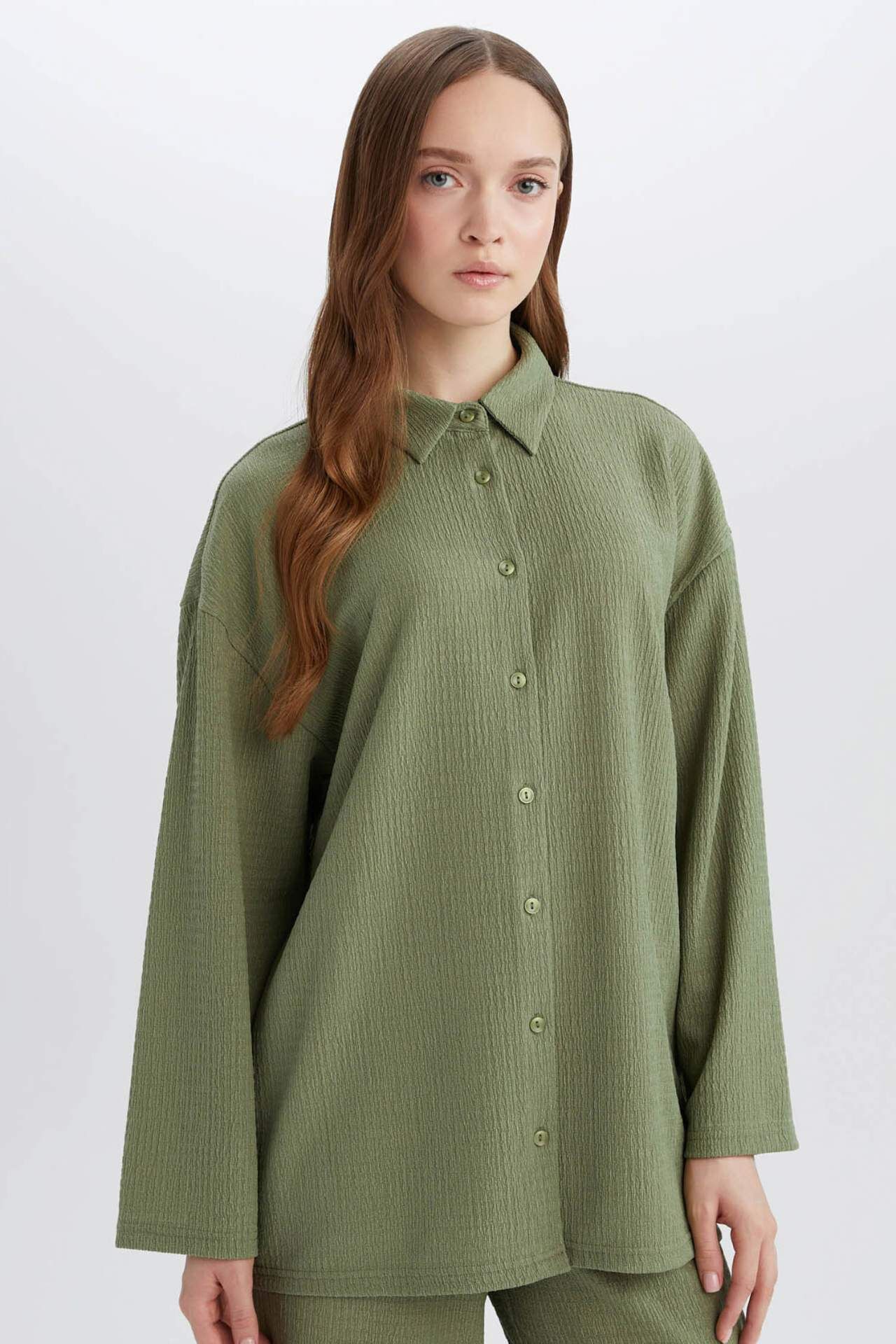 Relax Fit Polo Yaka Bürümcük Uzun Kollu Gömlek