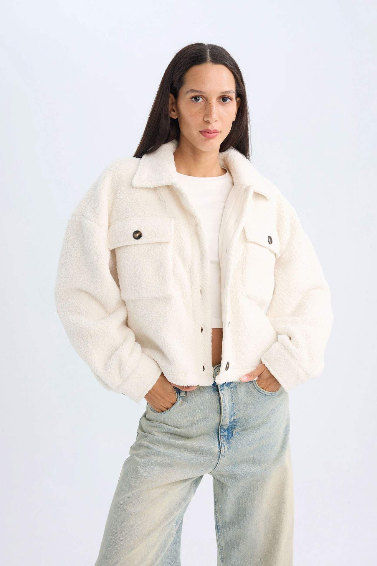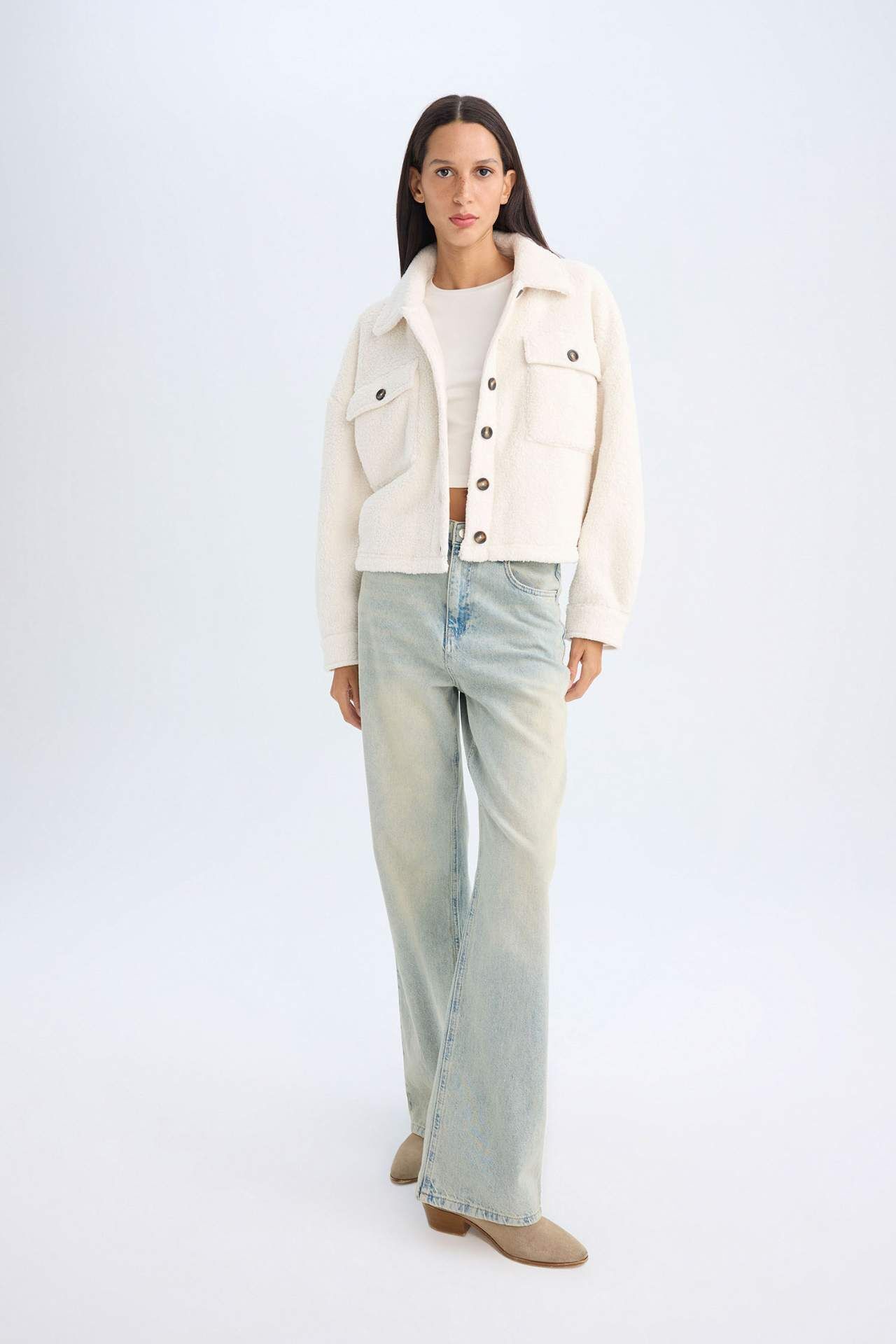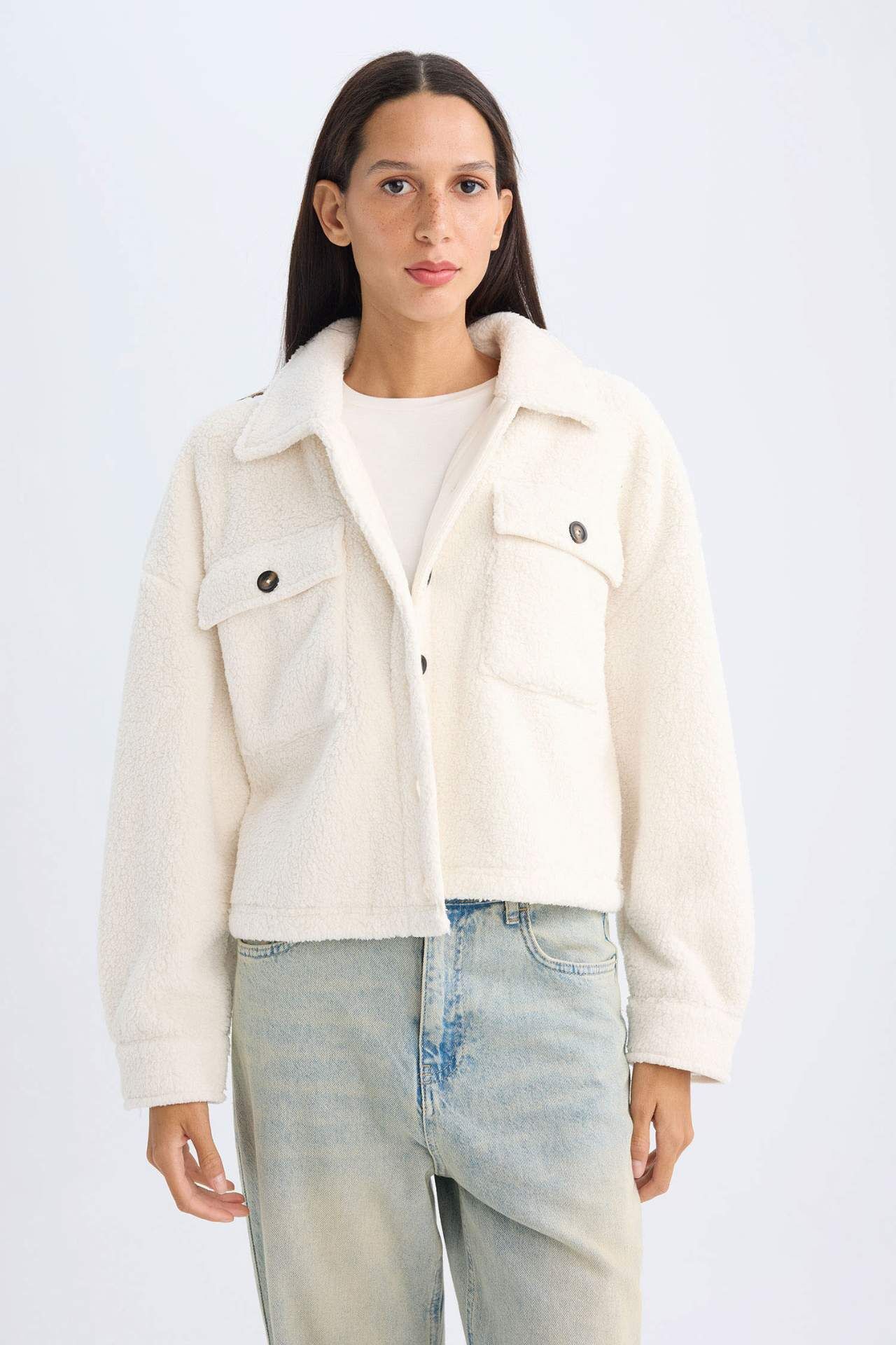 DeFacto Relax Fit Polo Yaka Düğmeli Cepli Welsoft Pelüş Gömlek Ceket C8230AX24WNER105