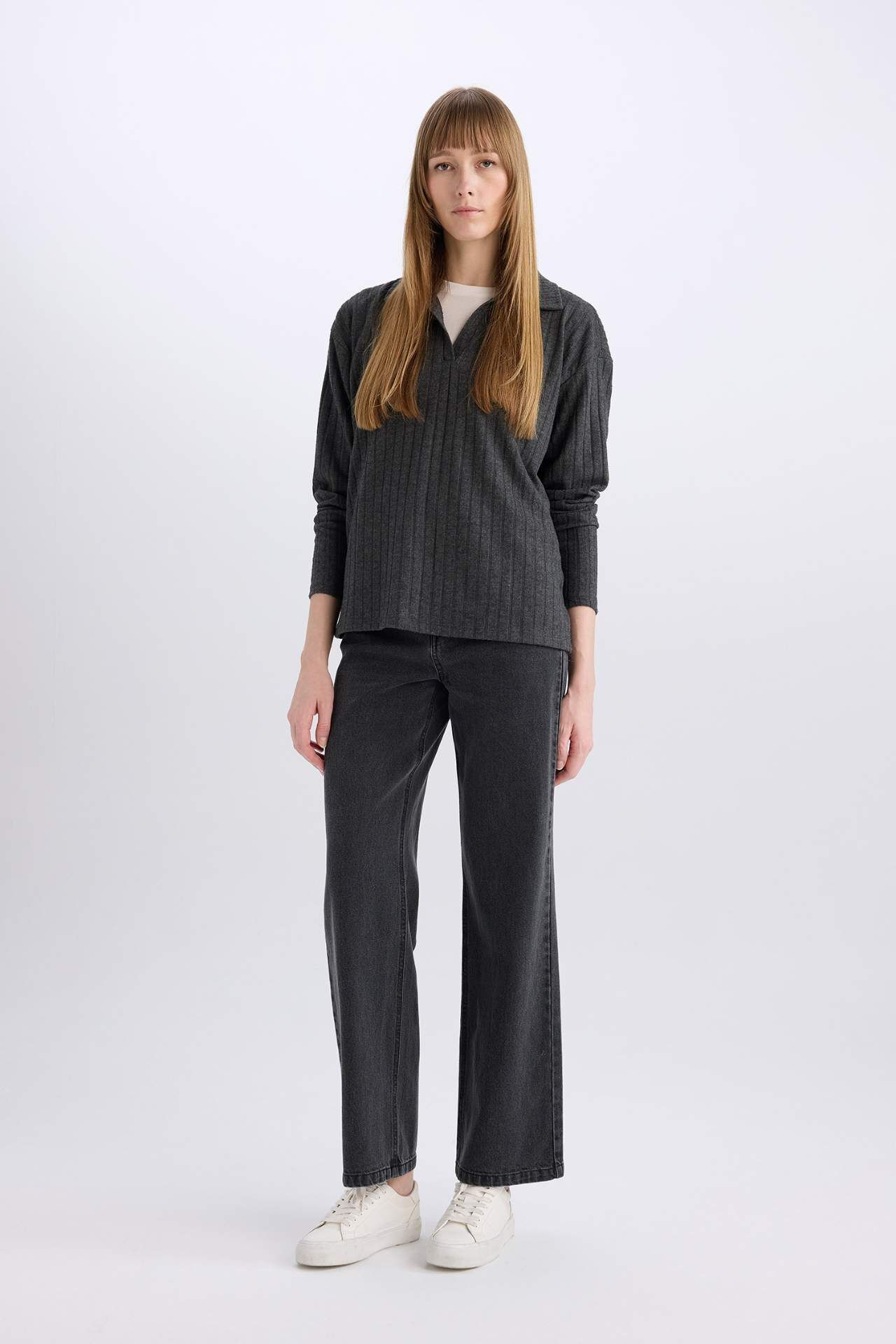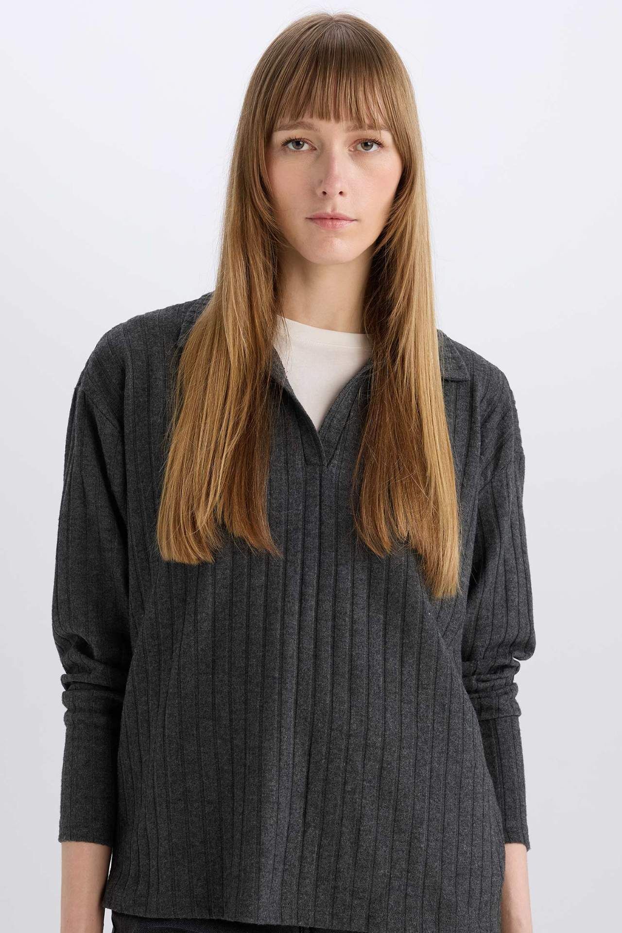 DeFacto Relax Fit Polo Yaka Fitilli Kaşkorse Uzun Kollu Tişört B2404AX24AUAR53