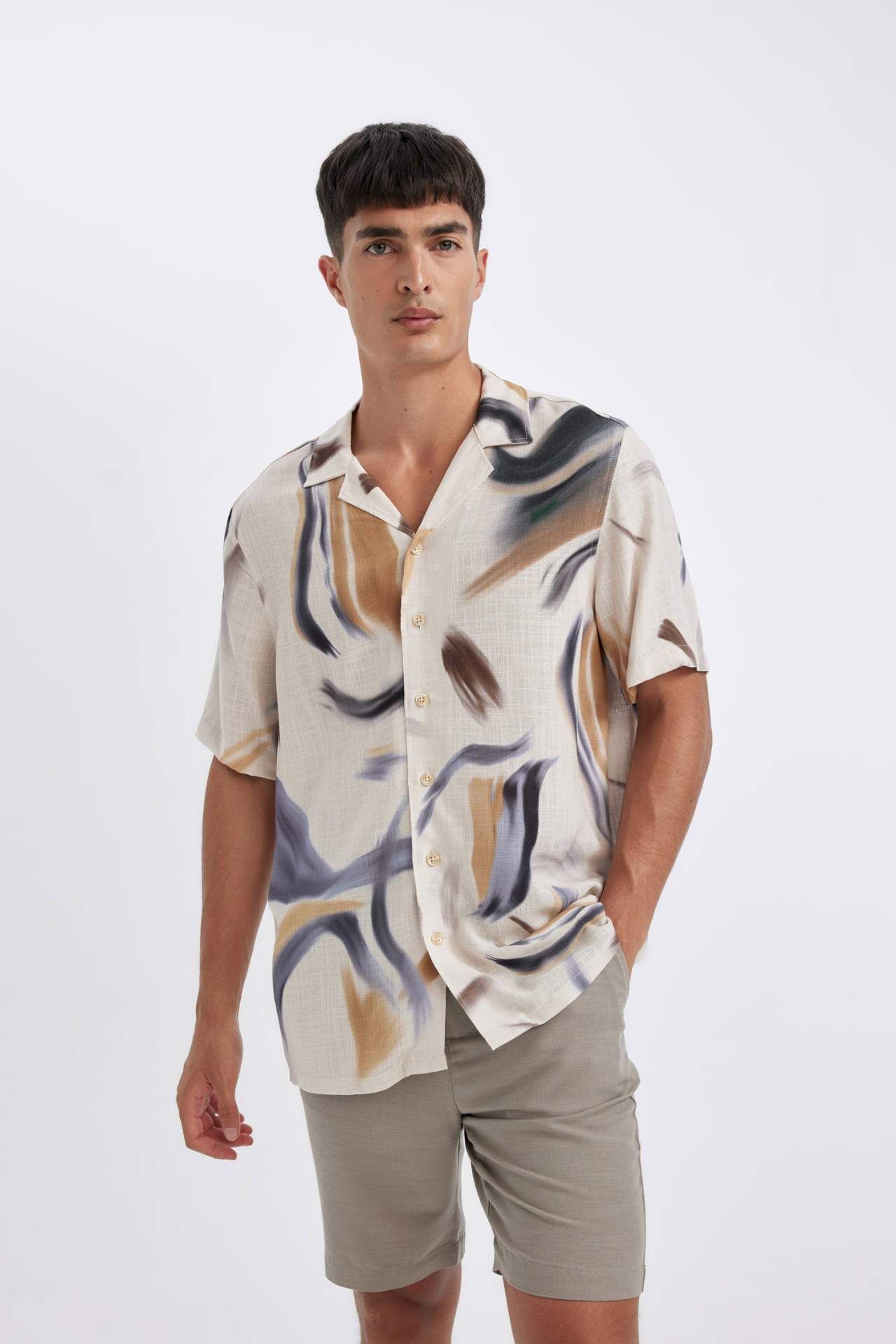 DeFactoFit Relax Fit Polo Yaka Kısa Kollu Gömlek D4198AX24SMBG650