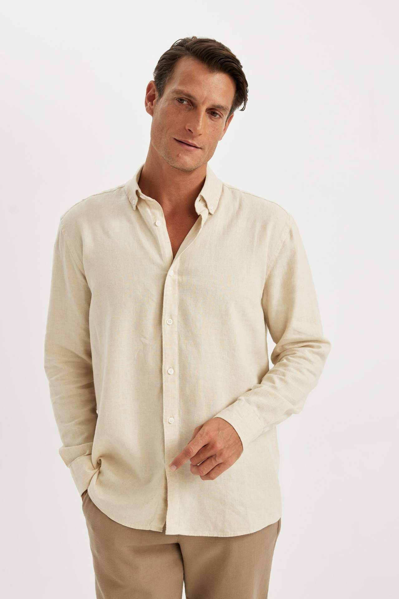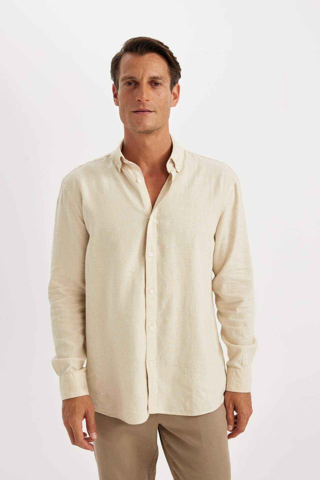 DeFacto Relax Fit Polo Yaka Pamuklu Uzun Kollu Gömlek