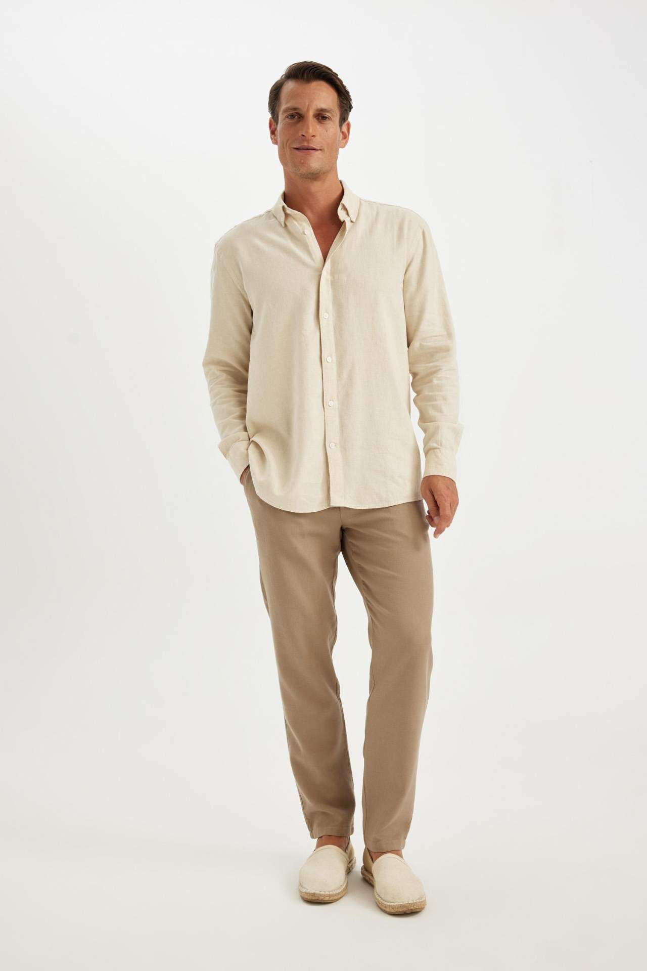 Rahat kesimi ve şık tasarımıyla öne çıkan Relax Fit Polo Yaka Pamuklu Uzun Kollu Gömlek, gardırobunuzun vazgeçilmezi olmaya aday. Pamuklu kumaşıyla konfor sunarken, uzun kollu yapısıyla şıklığı da beraberinde getiriyor. Hem günlük kullanıma hem de özel günlerde tercih edebileceğiniz bir parça. Viskoz 45%,Keten 55%,Viskoz 45%,Keten 55%,Viskoz 45%,Keten 55%,Viskoz 45%,Keten 55% Manken Bedeni: Göğüs: 100 Boy: 1,88 Basen: 96 Bel: 84