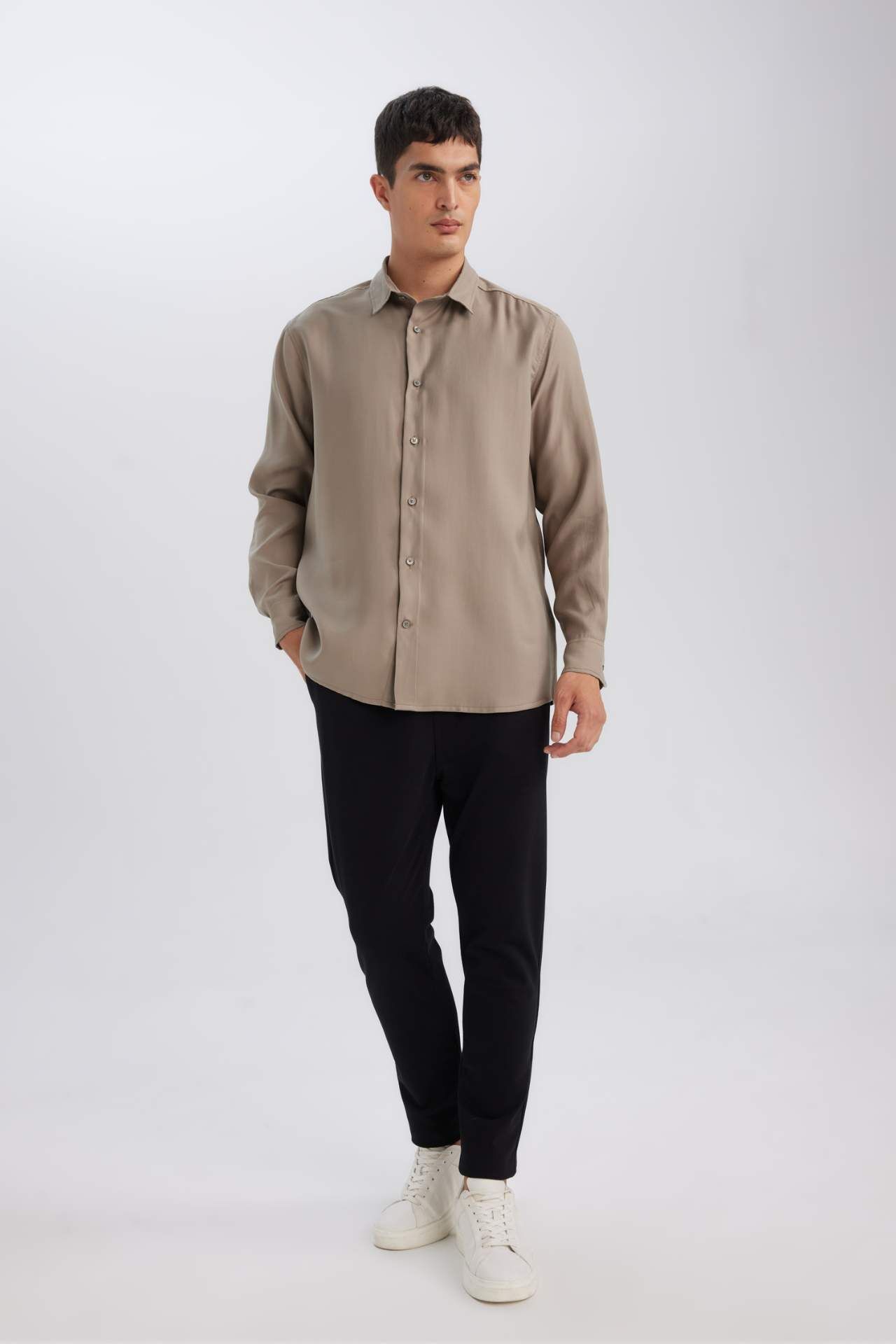 DeFacto Relax Fit Polo Yaka Twill Uzun Kollu Gömlek D3376AX24AUKH466