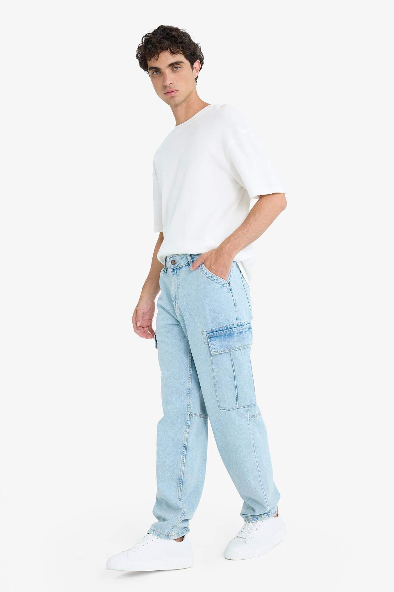 DeFacto Relax Fit Rahat Kesim Düz Paça Kargo Cepli Jean Yıkamalı Pantolon